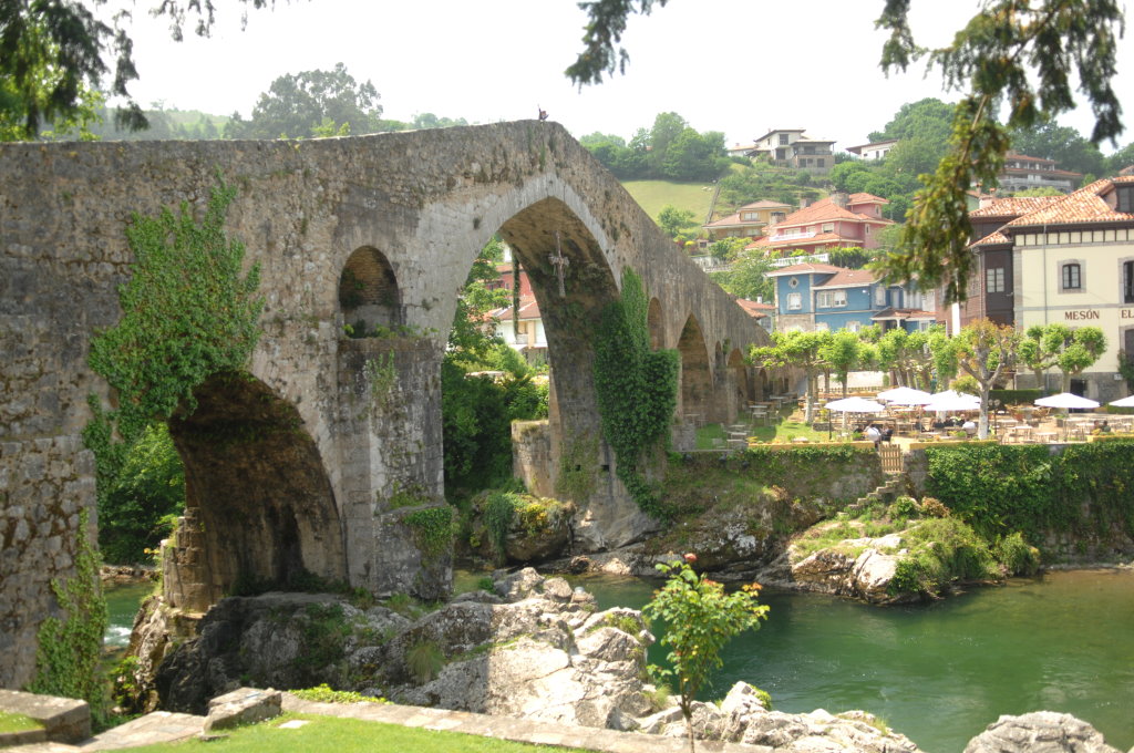 Die romanische Steinbrücke In Cangas de Onís lohnt einen kleinen Zwischenstopp. Auch hier dominiert Cidre die Getränkehitliste. In der Sidreria La Sifoneria lässt es sich der Chef nicht nehmen, persönlich seine Kunstfertigkeit beim Einschenken zu demonstrieren. Die Pintxos mit den Glasaalen sind leider nicht wirklich echt.