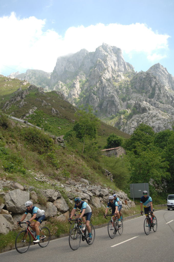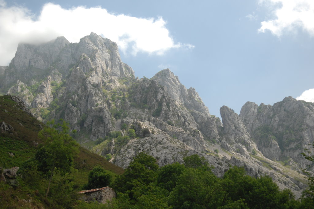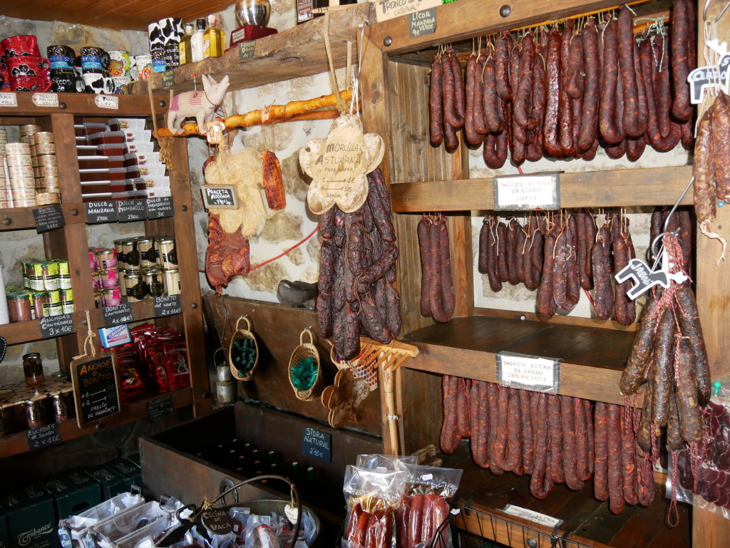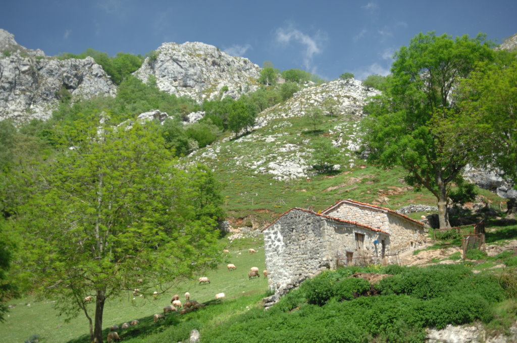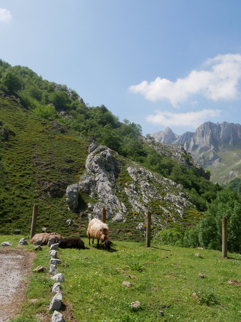 Vorbei an zahlreichen Käsereien geht’s anschließend weiter in immer engeren Serpentinen zwischen den spektakulären Bergmassiven bis nach Sotres. Ein winziger Gemischtwarenladen stellt sich uns zur Verkostung lokaler Wurst und Käsesorten in den Weg. Stolz zeigt uns die betagte Besitzerin die selbstgestrickt es Socken und ein Ziegenfell zur Weinaufbewahrung.