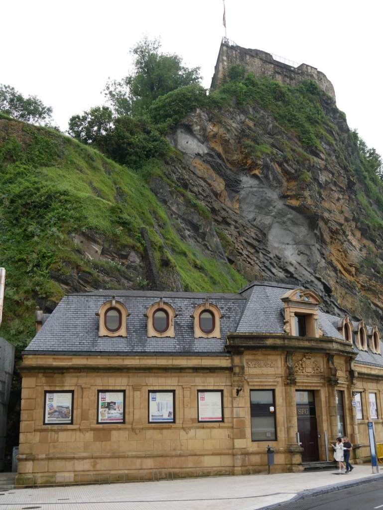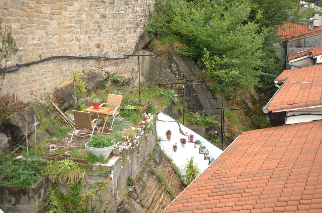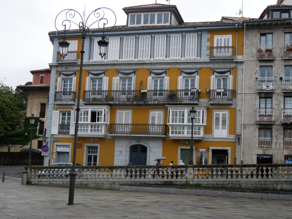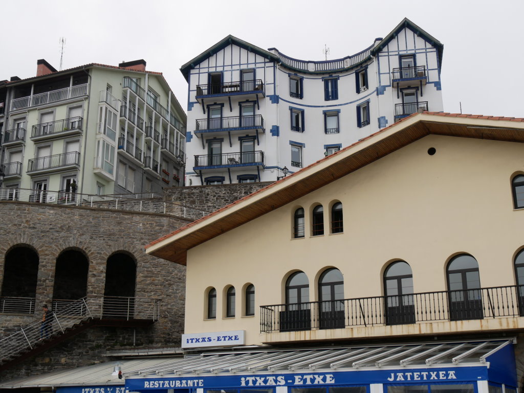 Für die Übernachtung haben wir uns eine kleine Pension im oberen Ortsteil von Elantxobe ausgesucht. Zum Glück finden wir kurz nach dem Ortseingang einen Parkplatz und müssen nicht unten am Hafen parken und dann wieder die Treppen in die Oberstadt hinaufkraxeln. Einen Aufzug gäbe es zwar, aber der ist wohl schon länger außer Betrieb…