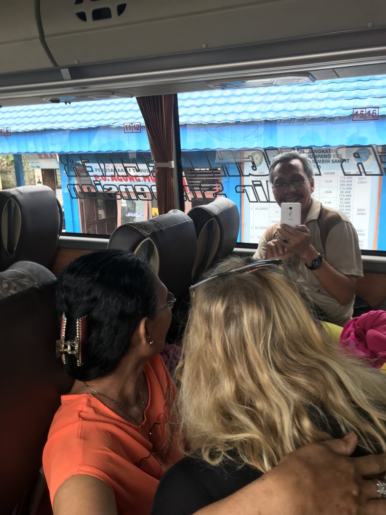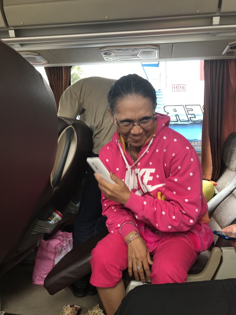 Noch während der Fahrt haben wir ein Quartier für die Nacht gebucht. Das wäre selbst ohne die Umrüstung des Handys mit einer indonesischen SIMcard (Telkomsel) kein Problem gewesen, da der Bus über WiFi an Bord verfügt. Mit der eigenen Karte ist der Netzzugang allerdings deutlich schneller – auch wenn es auf kurzen Abschnitten kleinere (Daten-)Funklöcher gibt, in denen nur Telefonieren möglich wäre. Kaum ist die Buchung bestätigt, ploppt schon eine WhatsApp-Meldung auf: Ein Mitarbeiter des Guesthouse erkundigt sich nach der ungefähren Ankunftszeit. Der Bus soll uns einfach bei einem großen Hotel in der Nähe aussteigen lassen, damit man uns von dort abholen und direkt ins Quartier fahren könne. Wow! So einfach kann spontanes Reisen jenseits der Trampelpfade sein.