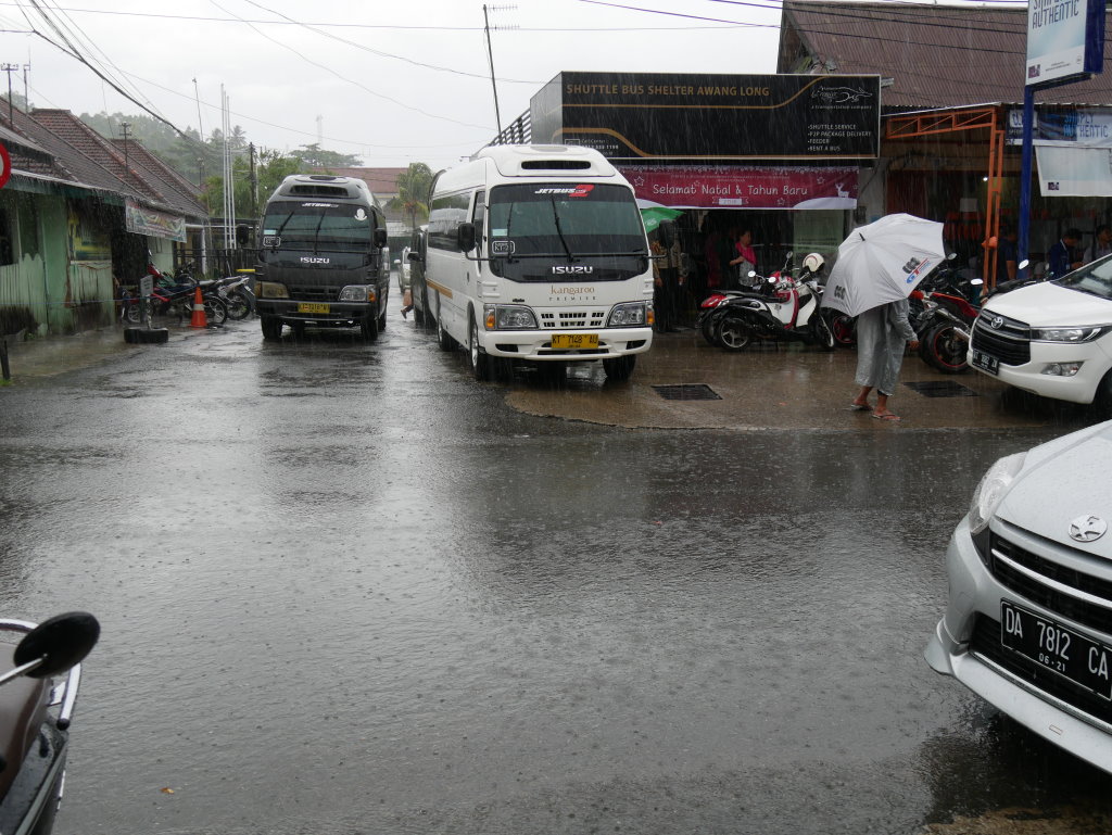 Die Minibusse von Kangguuru Travel fahren im 10-Minutentakt von Balikpapan nach Samarinda. Es regnet in Strömen, also „ideales“ Wetter für einen Reisetag von A nach B. Am Morgen die Überraschung. Sarkani, unser Guide aus Banjarmasin meldet sich per WhatsApp. Sein Sohn habe seit gestern Winterferien und sich einen Urlaub bei der Tante in Samarinda gewünscht. Also sei er mit seiner Familie kurzentschlossen über Nacht die 600 km Richtung Norden gefahren und habe sie bei der Schwester abgeliefert. Ach ja, natürlich würde er uns gern bei der bevorstehenden Tour zu den Dayak führen. Sein Freund Lucas habe bereits eine individuelle Route ausgearbeitet und nichts dagegen, wenn er wieder übernimmt.