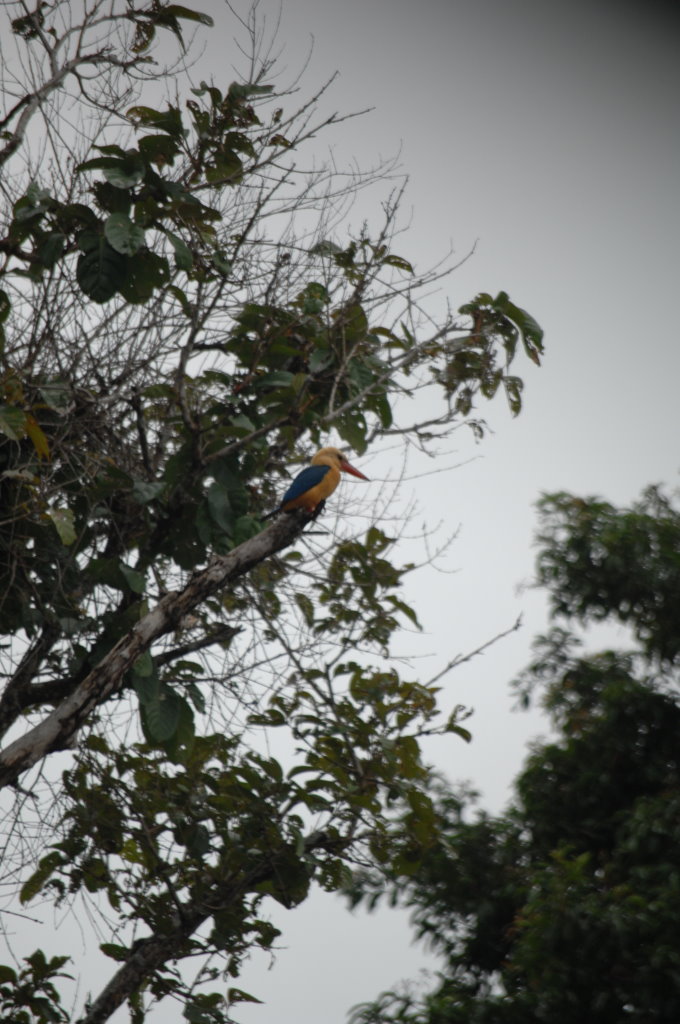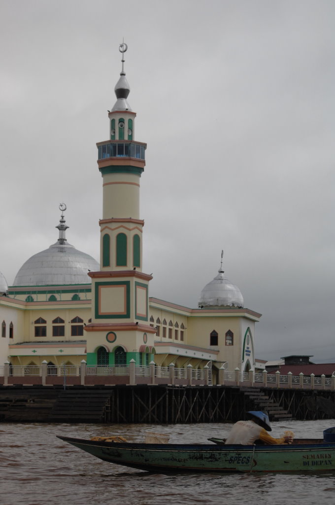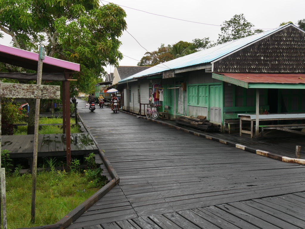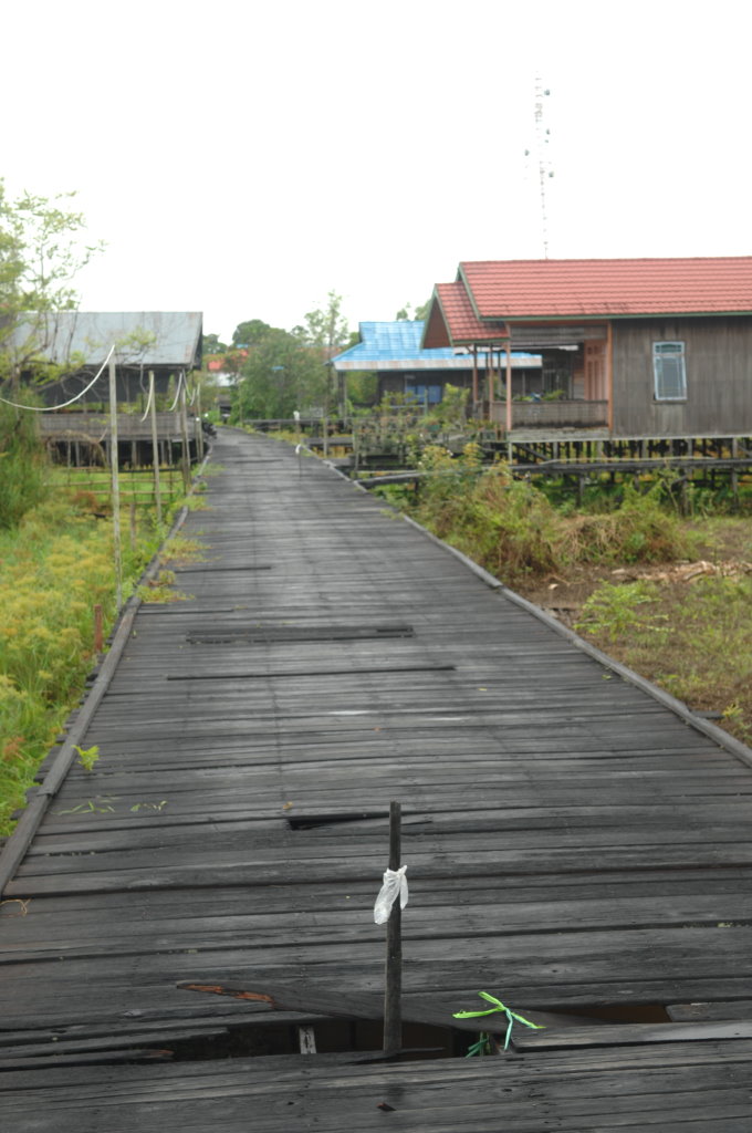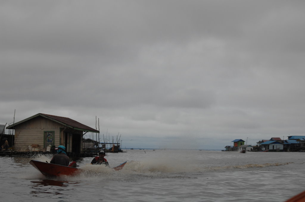 Nach einem Spaziergang über die weitläufigen Eisenholz-Stege von Muara Muntai klettern wir in Odins Ketinting. Immer wieder unterbricht er die Fahrt. Seinem geübtem Auge entgeht nichts. Ein blauorange gefiederter Eisfischer hockt regungslos auf einem toten Baumgerippe an der Uferböschung.