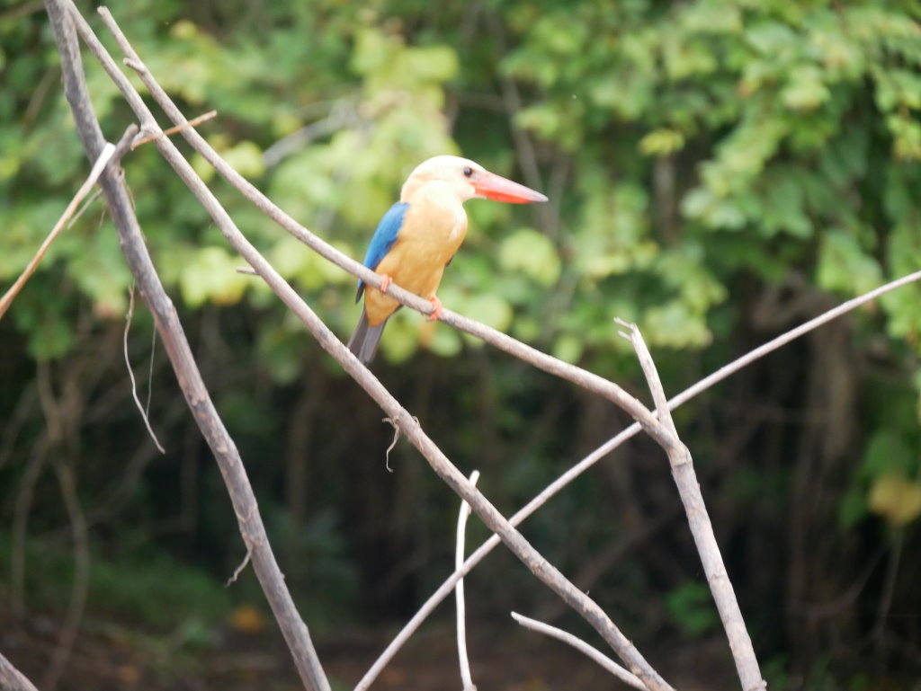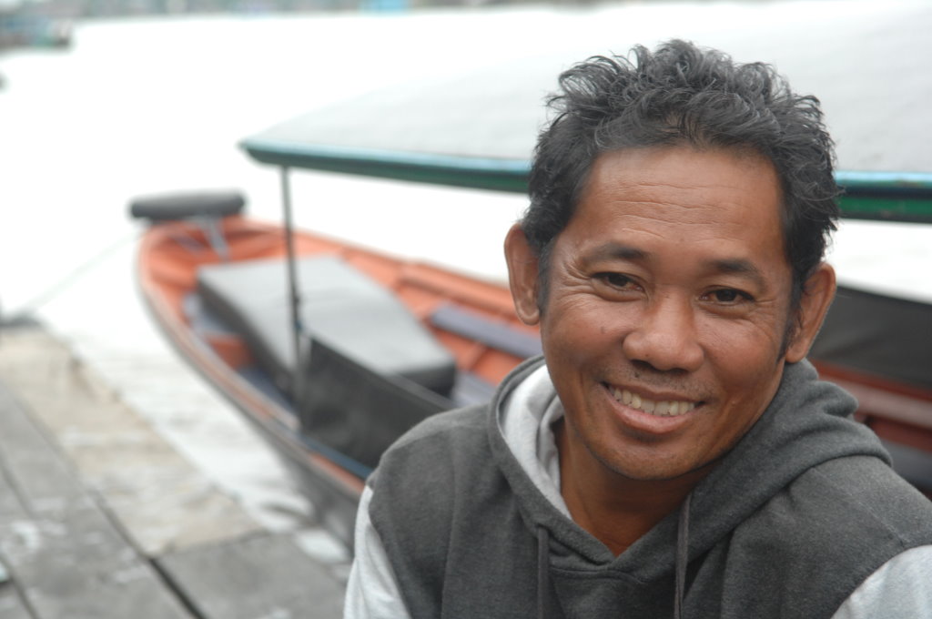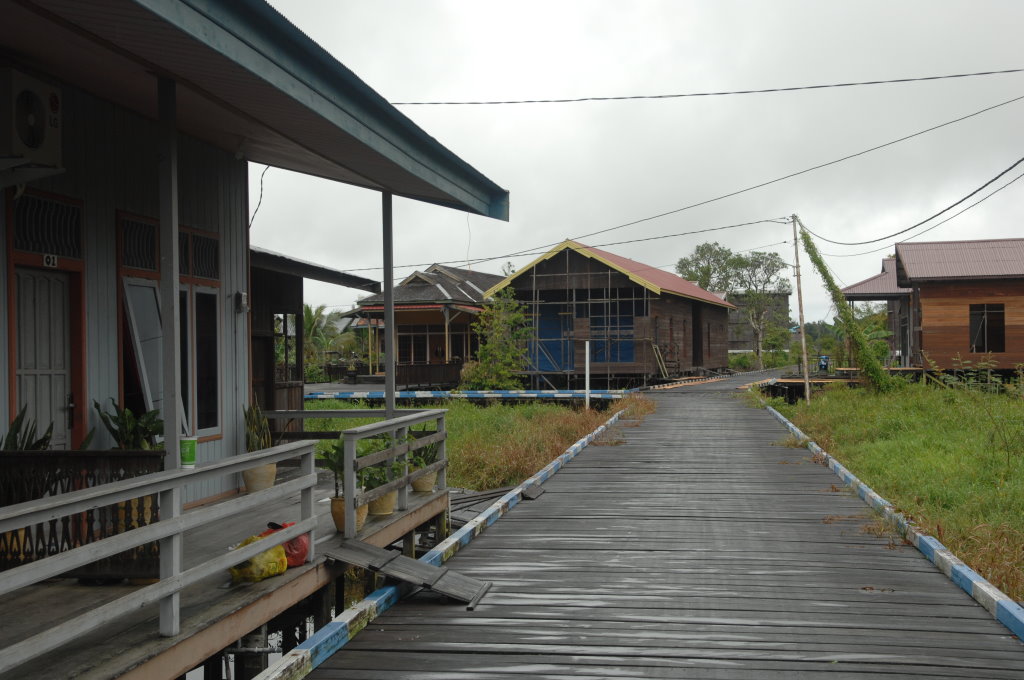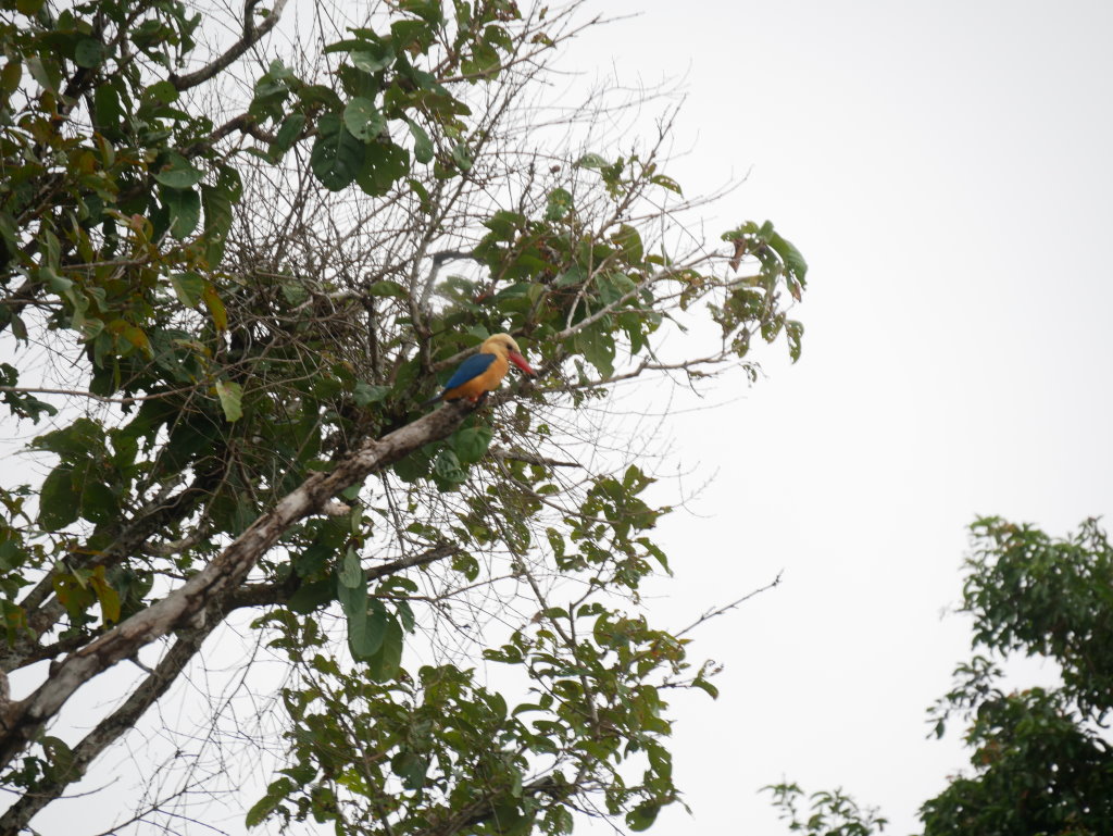 Nach einem Spaziergang über die weitläufigen Eisenholz-Stege von Muara Muntai klettern wir in Odins Ketinting. Immer wieder unterbricht er die Fahrt. Seinem geübtem Auge entgeht nichts. Ein blauorange gefiederter Eisfischer hockt regungslos auf einem toten Baumgerippe an der Uferböschung.