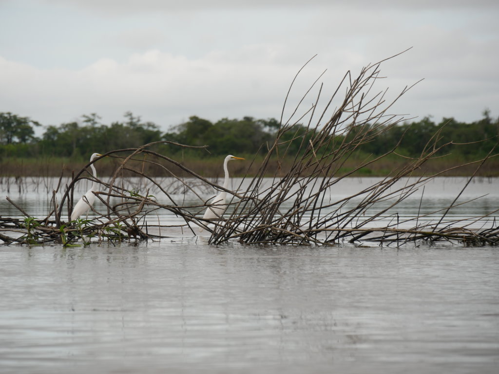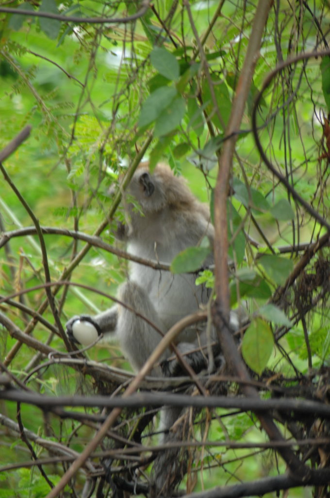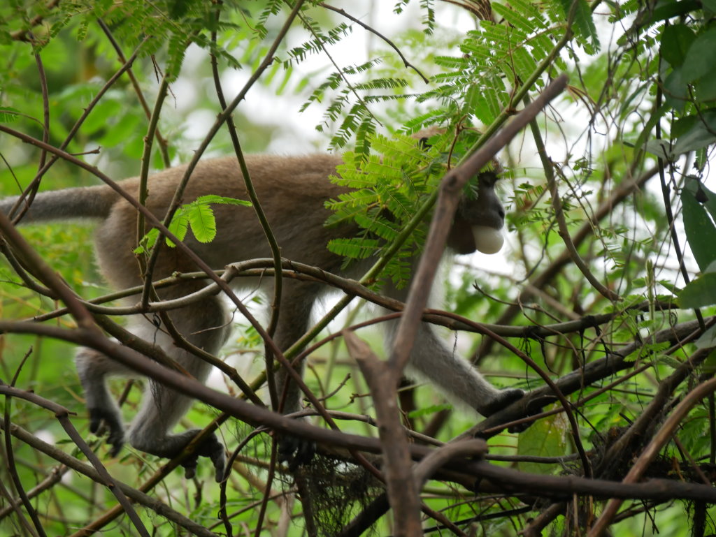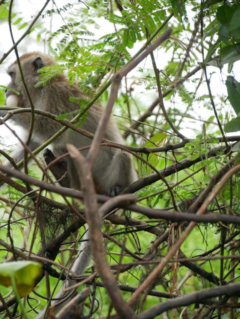 Kurz darauf beobachten wir eine Affenfamilie beim Frühstück. Geschickt pellen sie das weiße Fruchtfleisch aus den haarigen Schalen der Rambutan, die wir Ihnen zugeworfen hatten. Eine Flussbiegung weiter sind es mehrere Reiher, die unsere Aufmerksamkeit auf sich ziehen.
