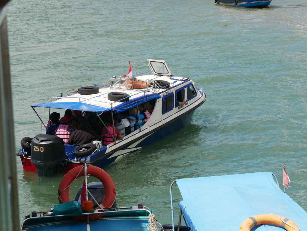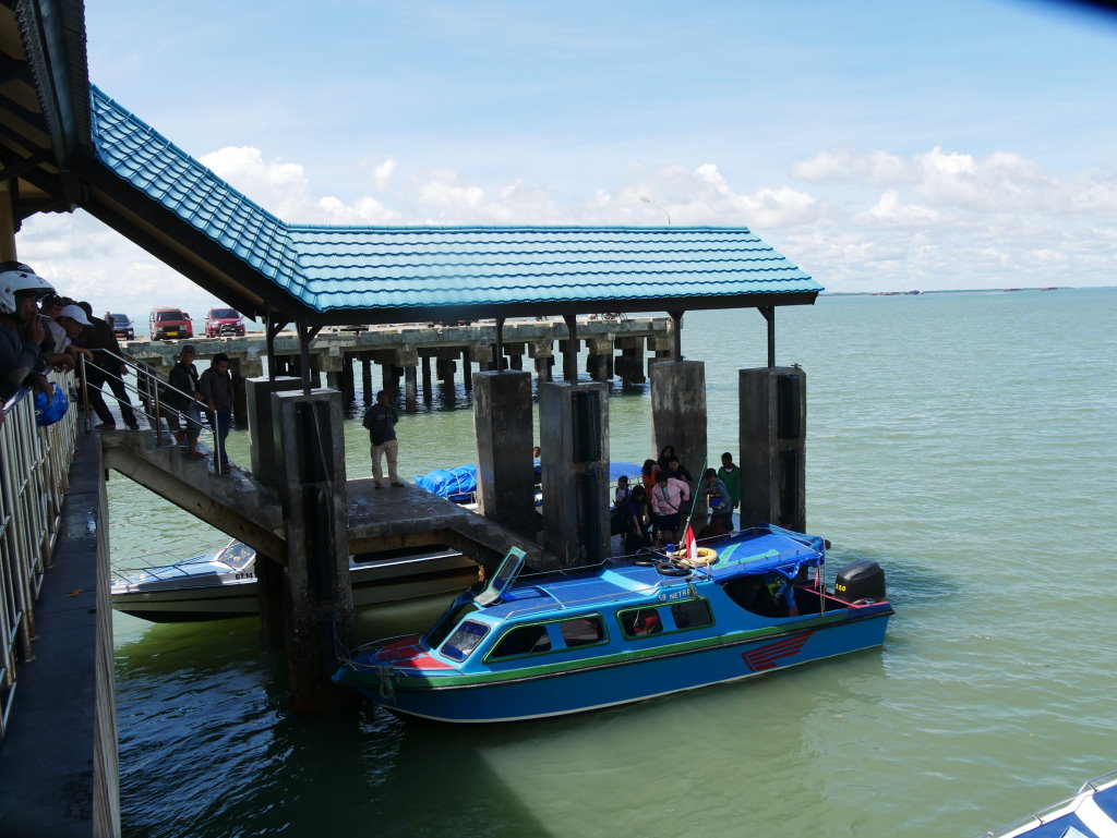 Dann geht es plötzlich ganz schnell. Das Speedboot nach Nunukan macht am Pier fest, allerdings nicht an dem wo wir warten. Wir sehen „unseren“ Ticketverkäufer wild gestikulieren. Da sind noch zwei, die mit nach Nunukan wollen. Das Boot ist blitzschnell belegt. Selbst ein Indonesier und seine Frau, die gemeinsam mit uns gewartet hatten, haben keine Chance. Das Boot ist voll.