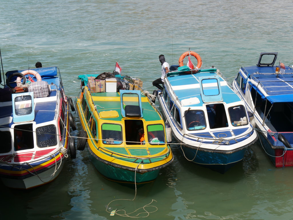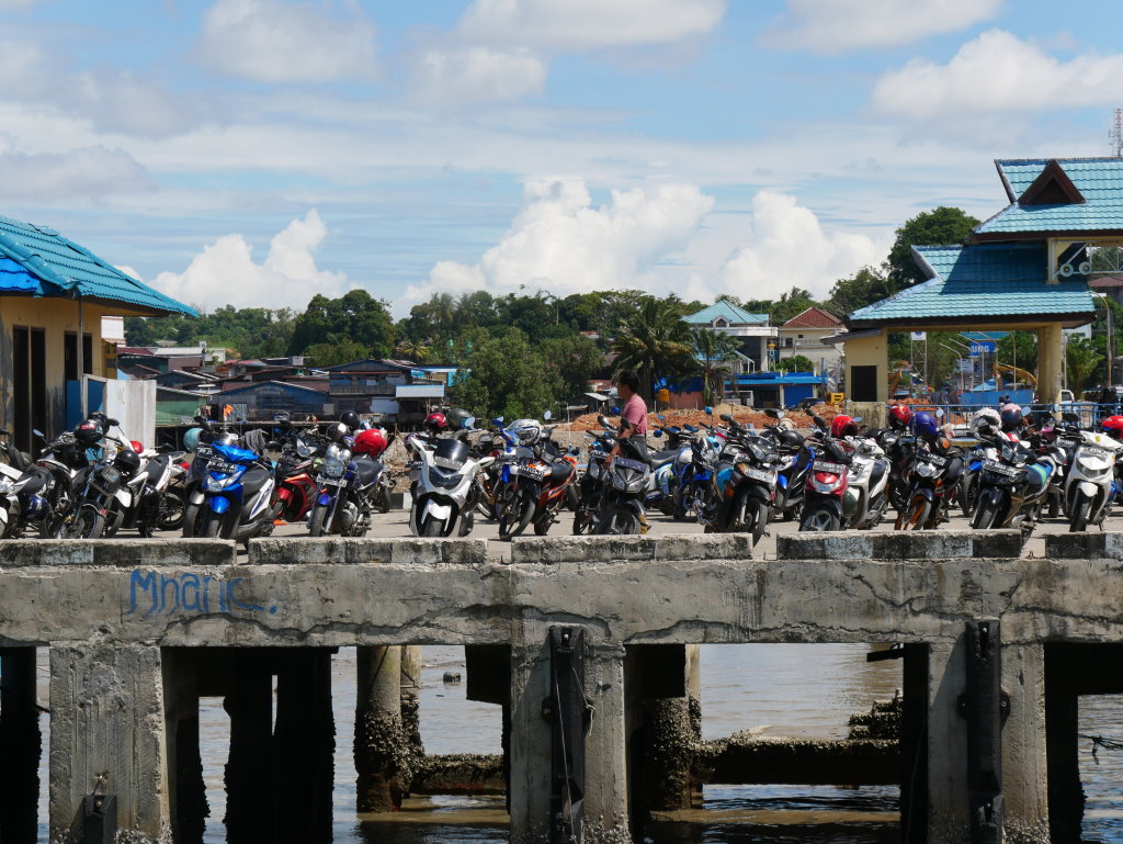 Auf dem Pier von Tarakan geht es zu wie bei einer Versteigerung. Die Ticketverkäufer rufen lautstark die Destinationen für die jeweiligen Speedboote in die Menge. Feste Abfahrtszeiten? Fehlanzeige. Erst wenn 20 Tickets verkauft sind, starten die Boote.