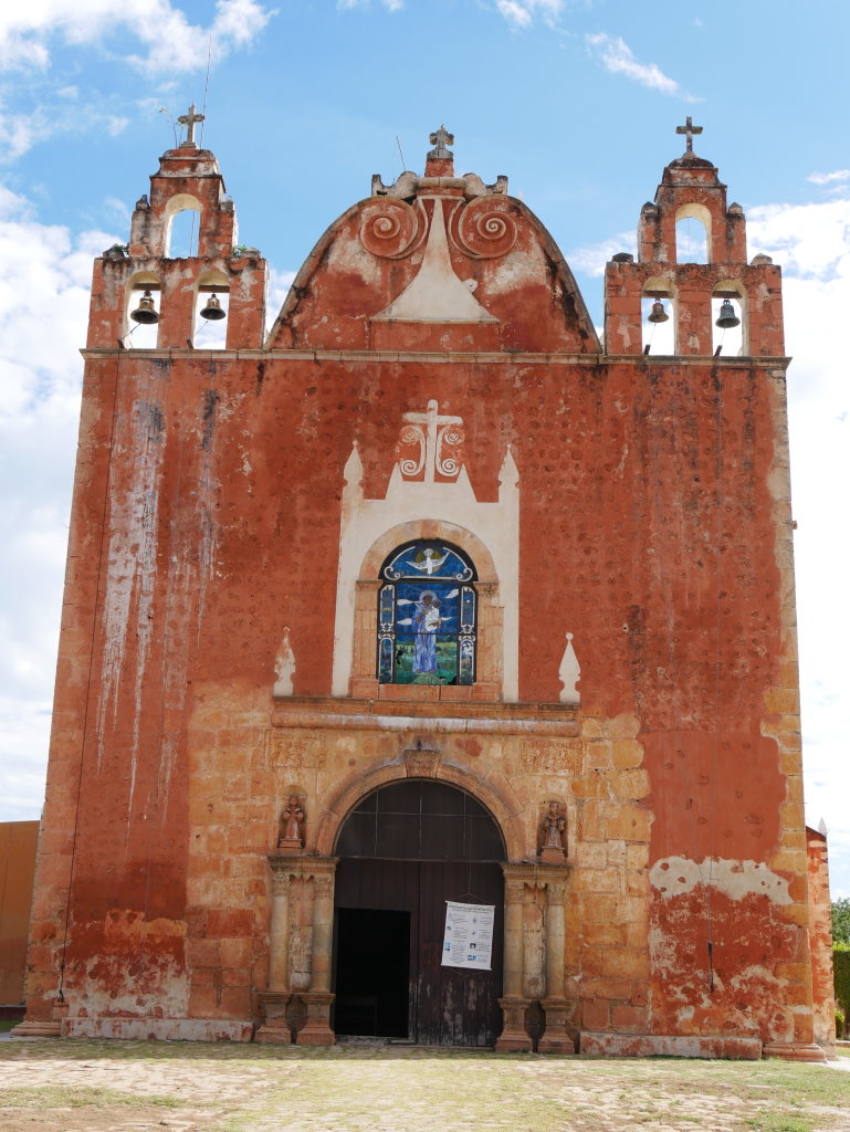 Von der Wehrkirche des Ortes Mama fahren wir zu einem weiteren ehemaligen Konvent, der sich im nahegelegenen Teabo befindet. Die Türen der Kirche San Petro y San Pablo sind leider verschlossen, also erkunden wir die Umgebung. Die Lage der Kirche ist typisch für viele in Mexiko, nämlich an einem Platz gegenüber dem Rathaus und unweit der Marktgebäude.