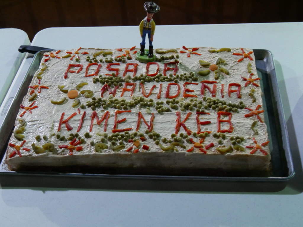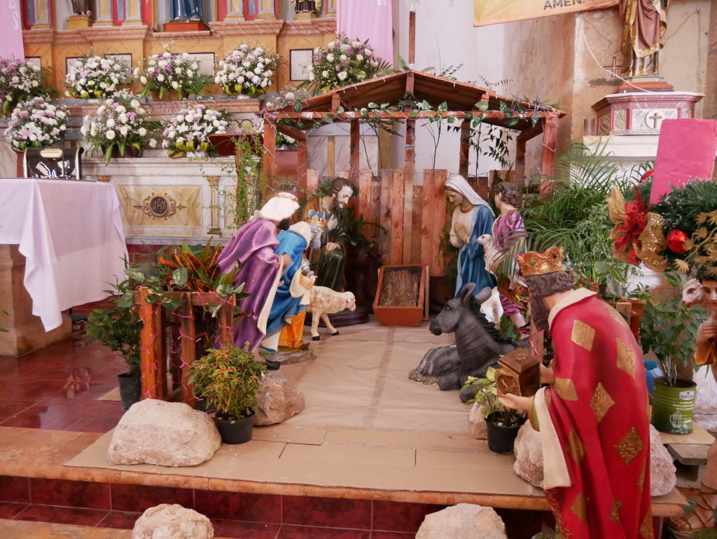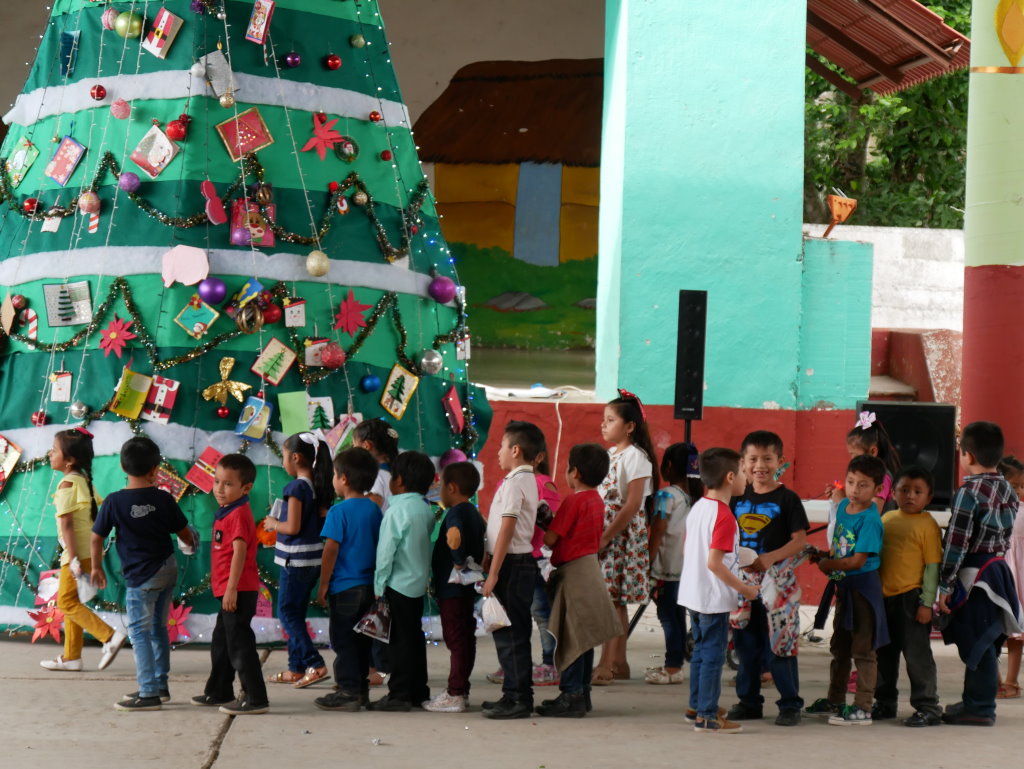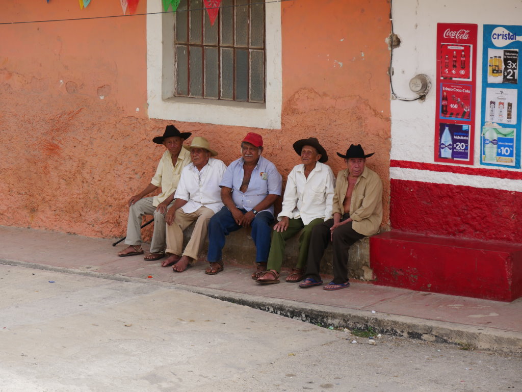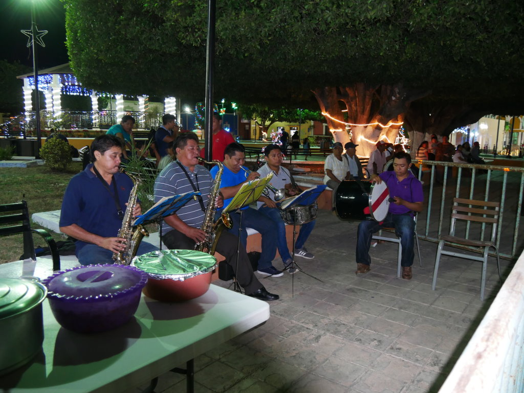 Mittlerweile ist es dunkel geworden und wir werden noch einmal aus dem Zimmer unseres Hotels gelockt, als von draußen laute Musik ertönt. Eine kleine Kapelle mit zwei Saxophonen, einer Trompete und zwei Trommeln kündigt eine Posada Navideña an. Ausgerichtet wird die vorweihnachtliche wohltätige Speisung vom örtlichen Club der „Kimen Keb“, was in der Maya-Sprache so viel wie Tote Vögel heißt…