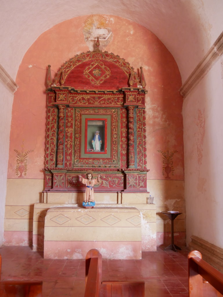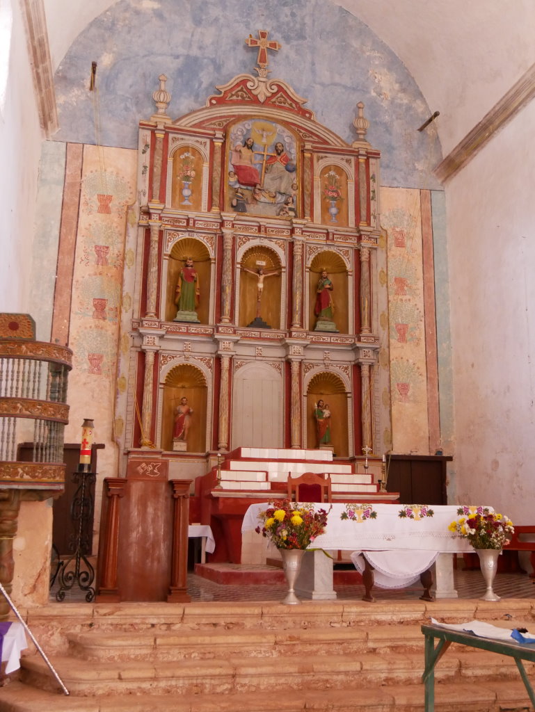 er Stopp ist Mani mit der Kirche des ehemaligen Franziskanerklosters San Miguel Arcángel. Sie wurde wie viele andere auch aus den Steinen alter Mayabauten errichtet. Wie in Mama handelt es sich bei dem Gebäudekomplex um eine trutzige Wehrkirche, die in einem mit Steinmauern geschützten Garten ebenfalls einen Pool mit zugehöriger Zisterne beherbergt.