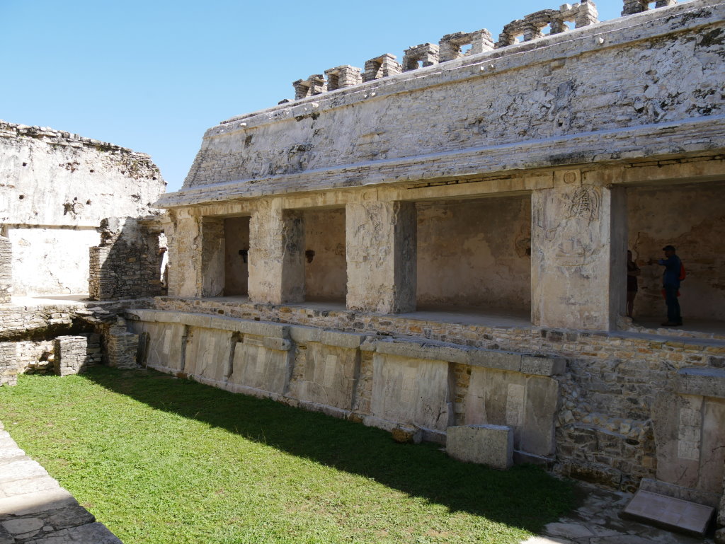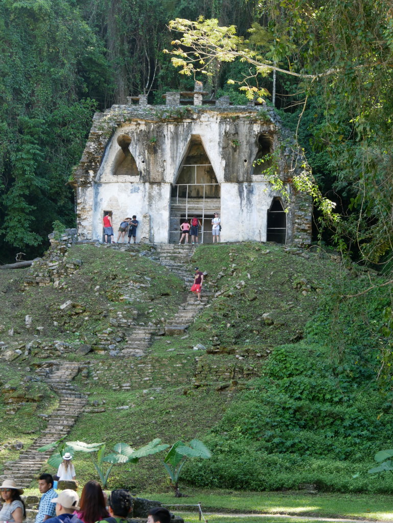 Jetzt geht es vorbei am recht kleinen Juego de Pelota („Ballspielplatz“) zum Templo del Norte („Tempel des Norden“) und dem Templo del Conde („Tempel des Grafen“). Obwohl Palenque bereits Ende des 18. Jahrhunderts entdeckt wurde, sind auf dem gesamten Areal bislang erst rund 5 Prozent der Bauten freigelegt worden. Die meisten Gebäude sind noch immer vom Dschungel überwachsen. Die Ausgrabungen dauern an.