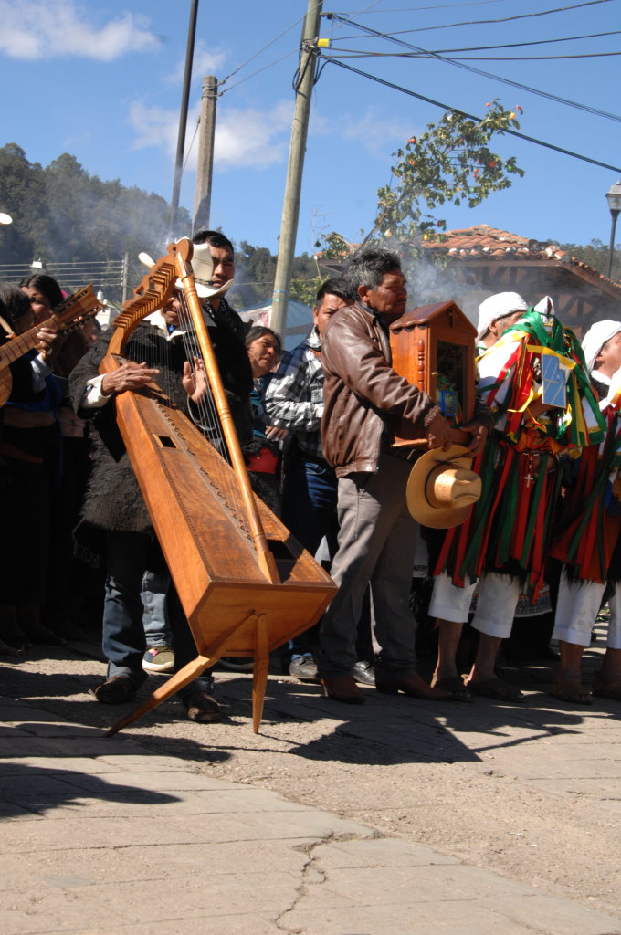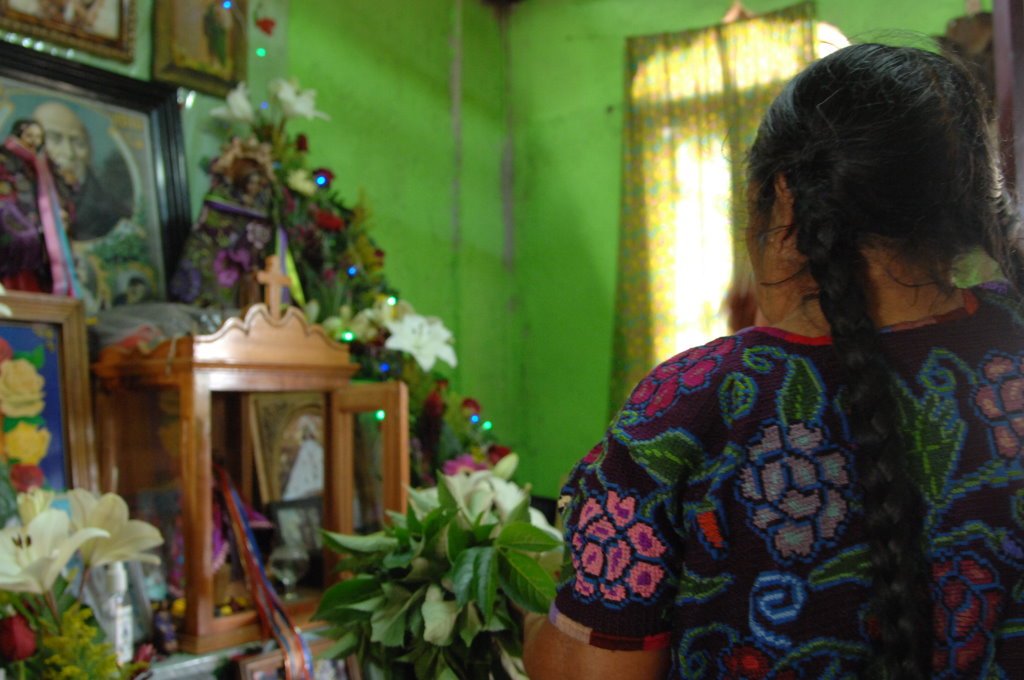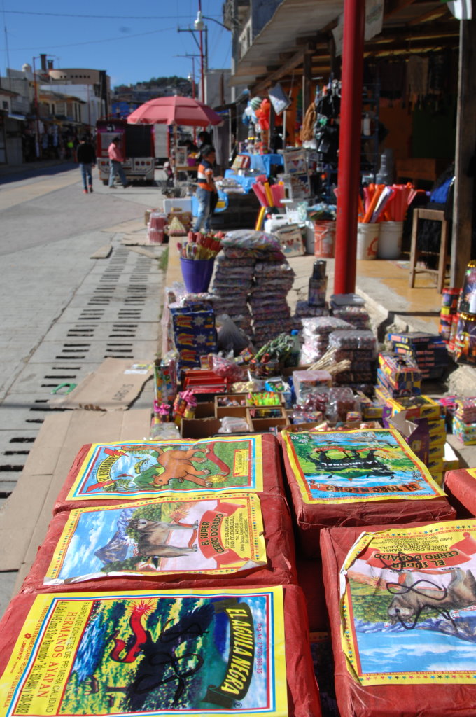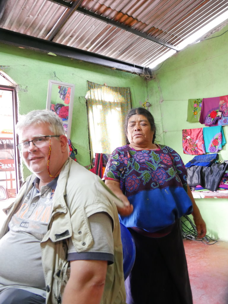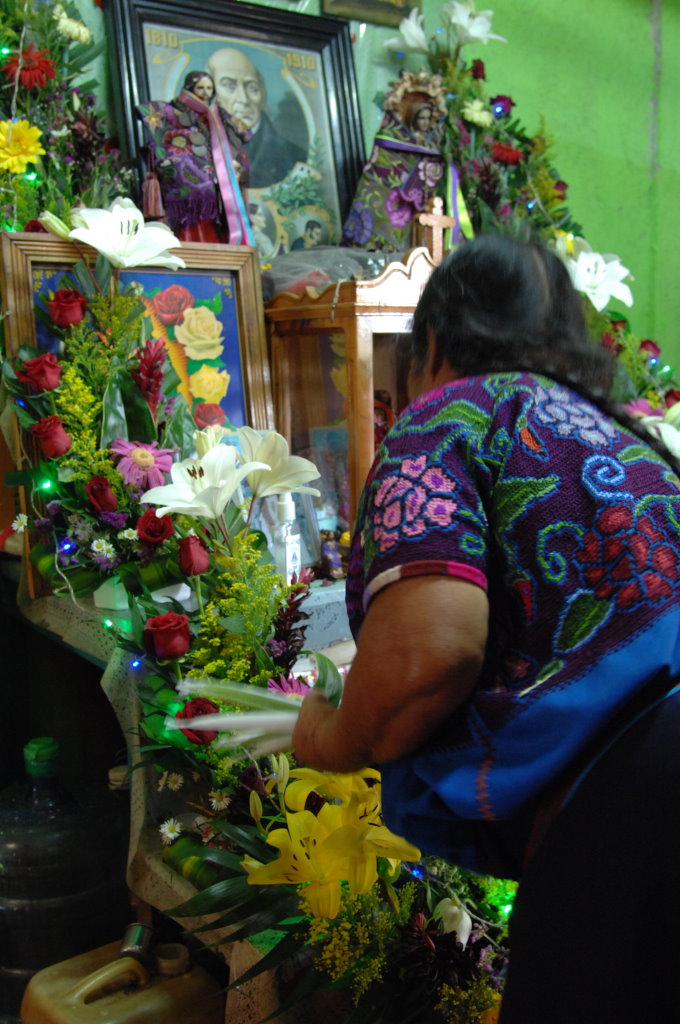 Wir fahren weiter in den Nachbarort Zinacantán, 8 Kilometer westlich von Chamula. Hier ist man weniger Fotoscheu. Dafür verirren sich auch weniger Touristen hierher. Bereits am Ortseingang warten einige junge Mädchen, um die Ankömmlinge in ihre Häuser einzuladen. Wir haben bereits ein Ziel. Wenige Straßen weiter warten Marie auf uns. Fabian hat einen Termin bei der Schamanin für uns arrangiert. Zunächst einmal wird er zum Einkaufen geschickt. Dem Medium sind die Kerzen ausgegangen. Dann geht es los. Unter ständigem Gemurmel ritueller Gebete wir der Körper des Klienten mit Holunderzweigen abgeschlagen. Dann folgen kreuzweise Berührungen mit den Kerzenbündeln. Den Abschluss bildet eine Art Salbung bestimmter Körperstellen mit einem wohlriechenden Öl. Abschließend betet die weise Frau vor dem üppig geschmückten Hausaltar mit den nun entzündeten Kerzen. Es sind 10 weiße und fünf grüne Kerzen, die weißen stehen für ein harmonisches Leben, die grünen für Erfolg im Beruf. Eine Reinigungszeremonie. Marie ist nicht nur Schamanin sondern arbeitet auch als Hebamme.