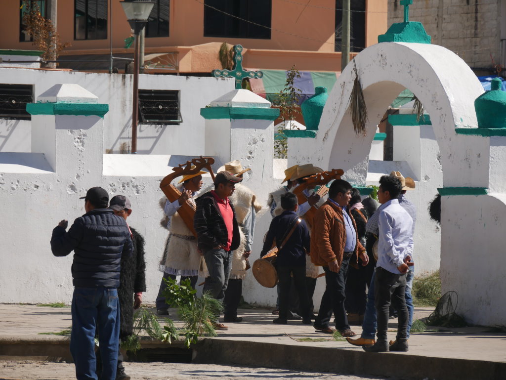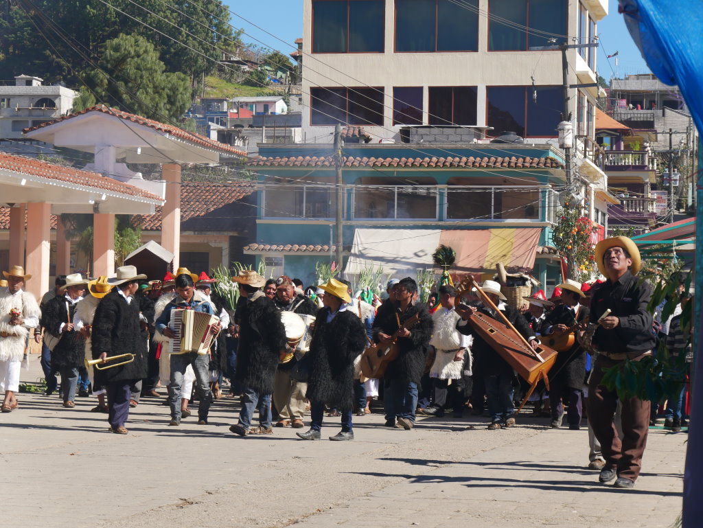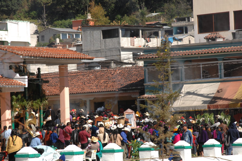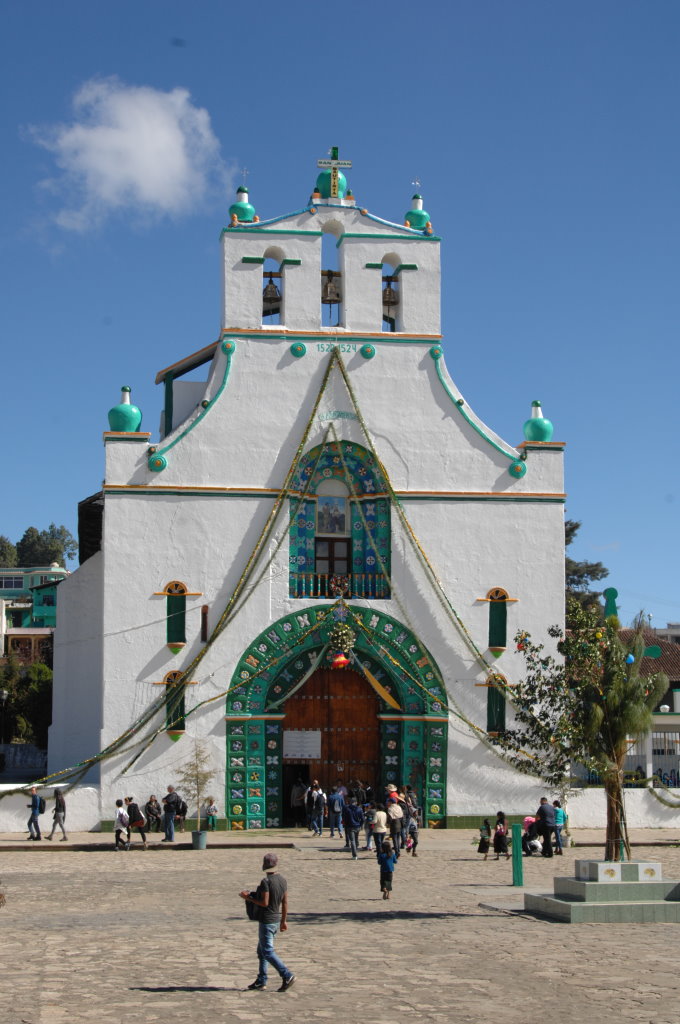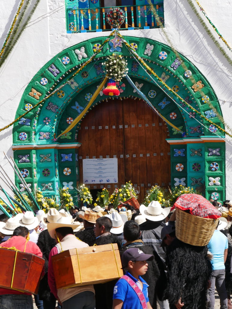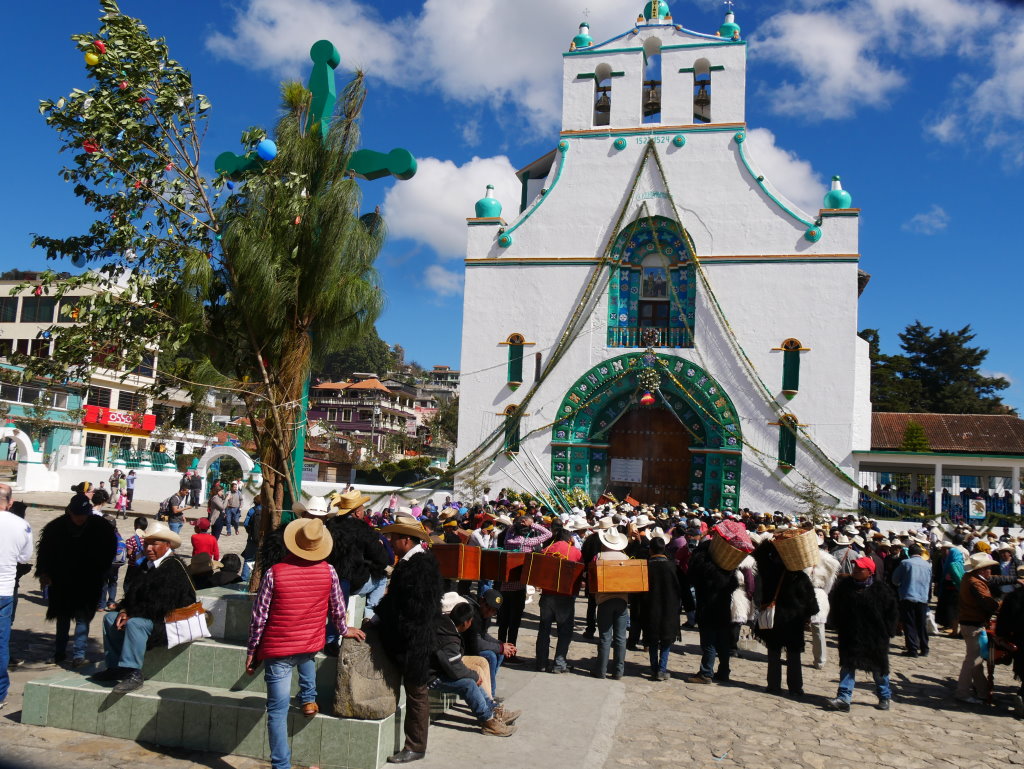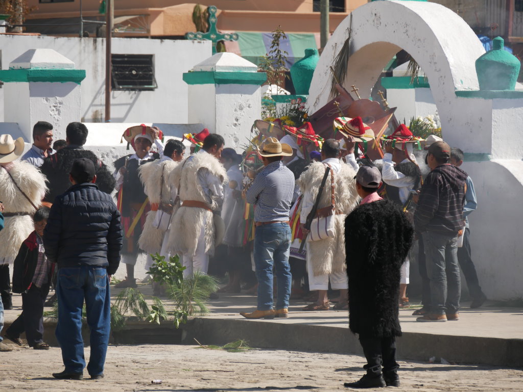 Der Altarraum ist förmlich zu gewuchert von Zweigen anderer Bäume, die ebenfalls mit Girlanden und bunten Luftballons geschmückt sind. Mittendrin eine kleine Vitrine mit dem Jesuskind. Ein Krippenspiel nach Indio-Art. Die Kirche ist lebendes Zeugnis für die einzigartige Religion der Chamulas. Der Ort ist Johannes dem Täufer geweiht und doch so anders als Kirchen, wie wir sie kennen. Der synkretistische Glaube der Tzotzil von Chamula manifestiert sich in einer Verbindung aus der Anbetung diverser Heiliger und schamanistischer Rituale.