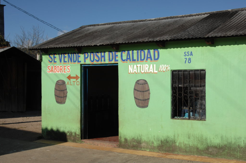 Am Nachmittag fährt uns Fabian zurück nach San Christobal de las Casas und dann rund 11 Kilometer weiter östlich nach Cruztón. Dieser Ort ist eine Hochburg der Schnapsbrenner. Pox (oder auch Posh) wird aus vergorenem Zuckerrohr, Mais und Weizen gebrannt und anschließend aromatisiert. Das heißt im Klartext: Einmal probieren reicht nicht, möglichst jede Variante von Mango bis Jamaika muss verkostet werden…