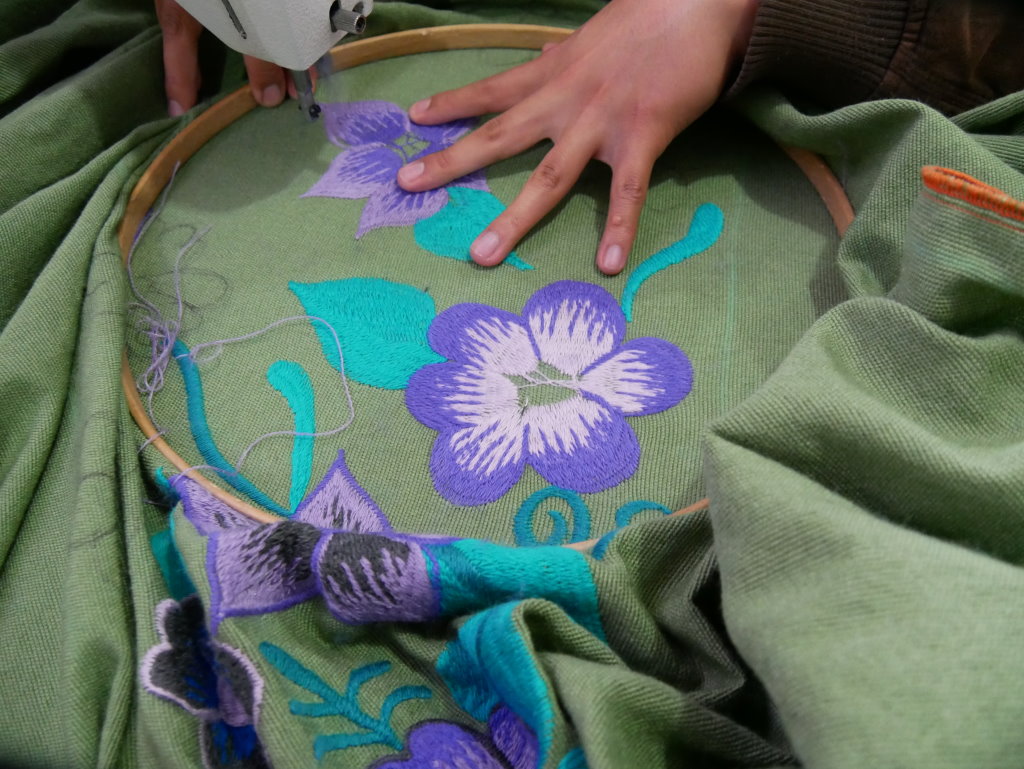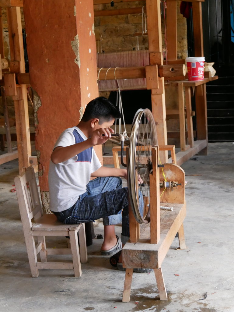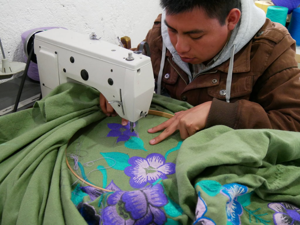 Auf diese Weise gereinigt und gestärkt, sind wir bereit für die nächste Etappe. Nachiq ist eine Textil-Kooperative mehrerer Familien. Der Chef des Hauses führt uns durch die Werkstätten. Hier arbeiten 13 Personen, weitere sind in Heimarbeit tätig. Die auf traditionellen Webstühlen gefertigten Stoffe werden teils maschinell, teils von Hand mit farbenfrohen Blumenmustern bestickt.