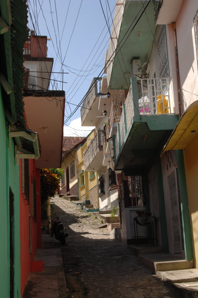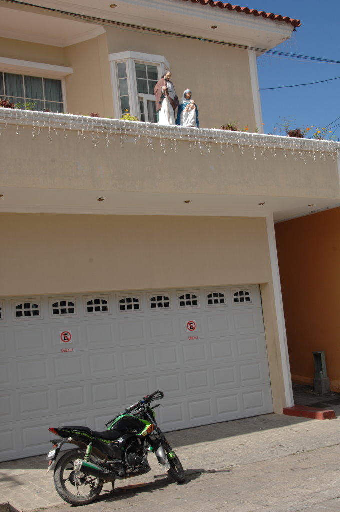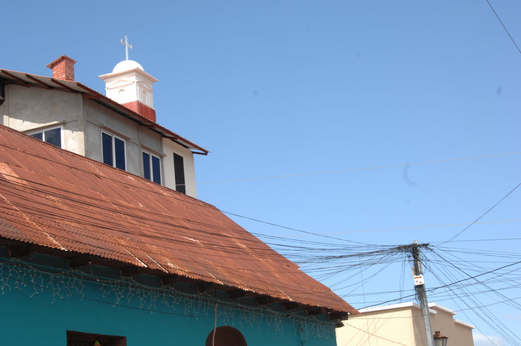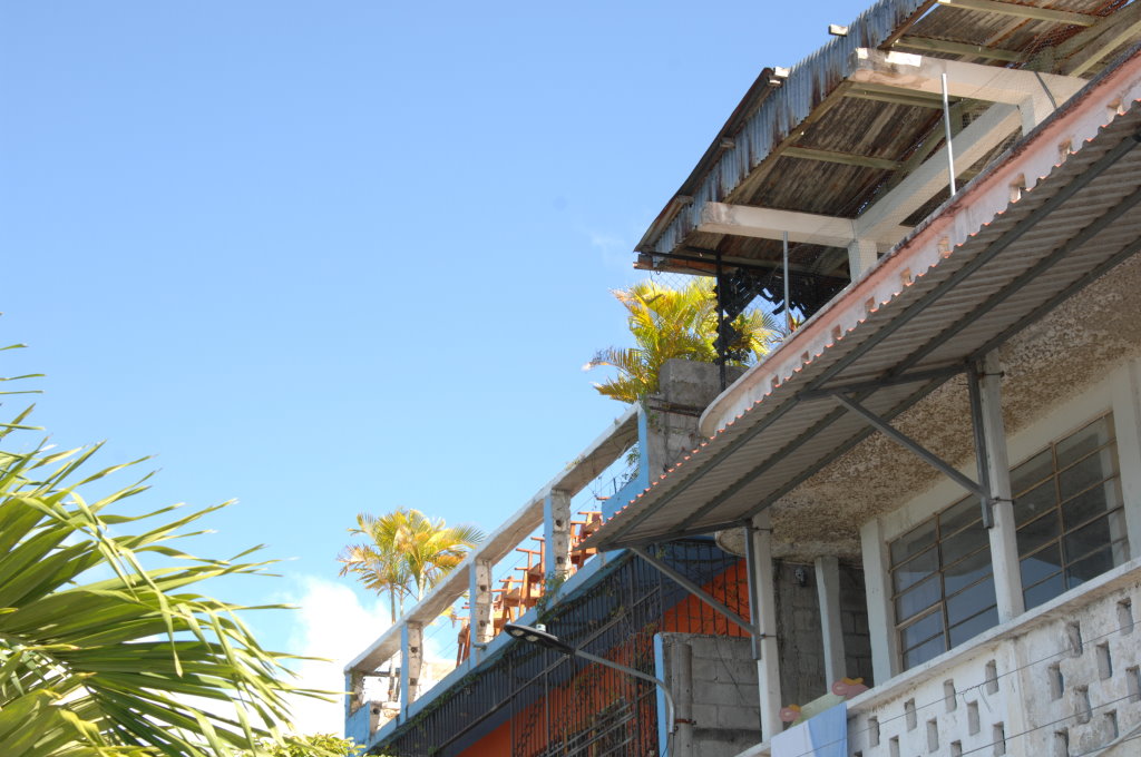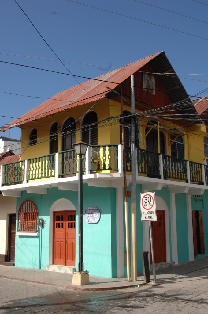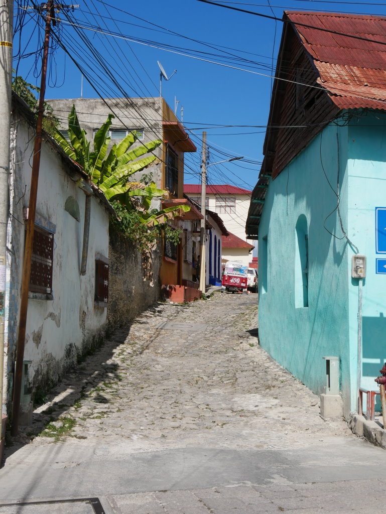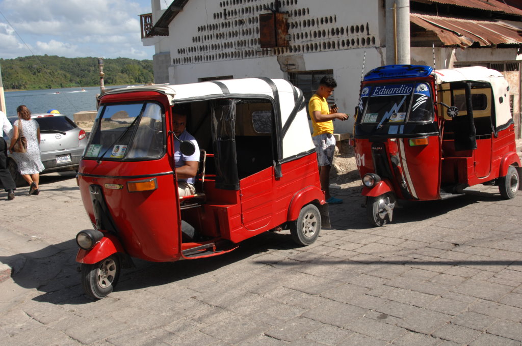 Wir spazieren gemütlich weiter auf der Uferpromenade rund um die Insel. Auf der Rückseite – gegenüber dem Damm, der sie mit dem Festland verbindet – müssen wir auf die höhergelegene Straße hinter den Häusern ausweichen. Seit 2013 ist der Wasserstand des Petén-Itza-Sees stark gestiegen und Teile des Malecóns stehen seitdem unter Wasser.
