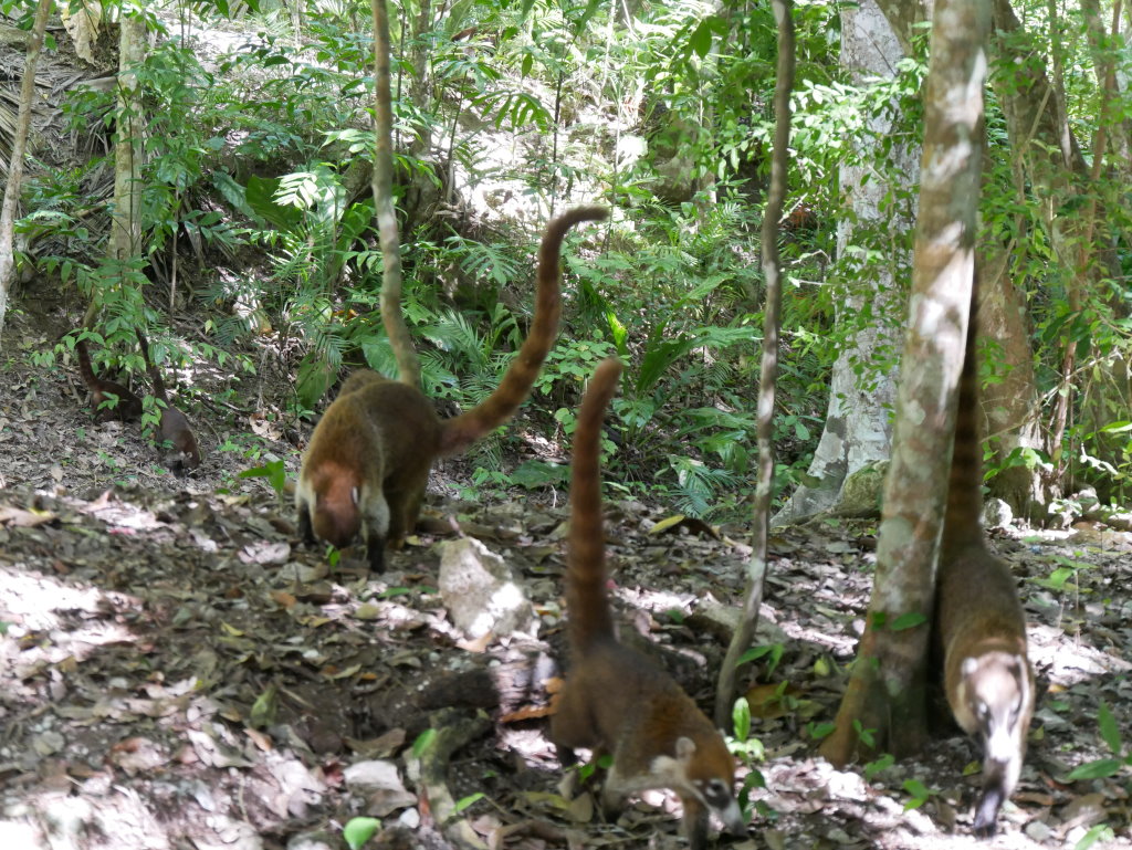 Es ist nicht wie bei den meisten bisher von uns besuchten Anlagen ein Platz, um den die üblichen Gebäude – Akropolis mit Palast, Ballspielplatz, etc – gruppiert sind, sondern gleich mehrere, die freigelegt und zugänglich gemacht wurden.