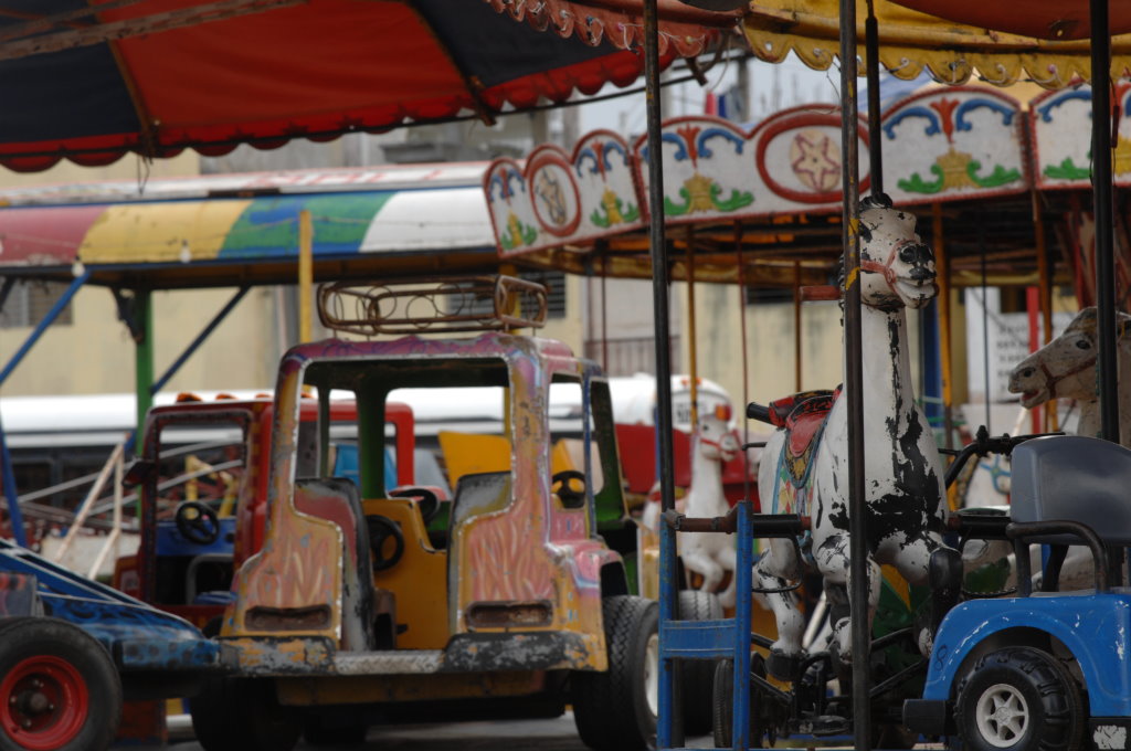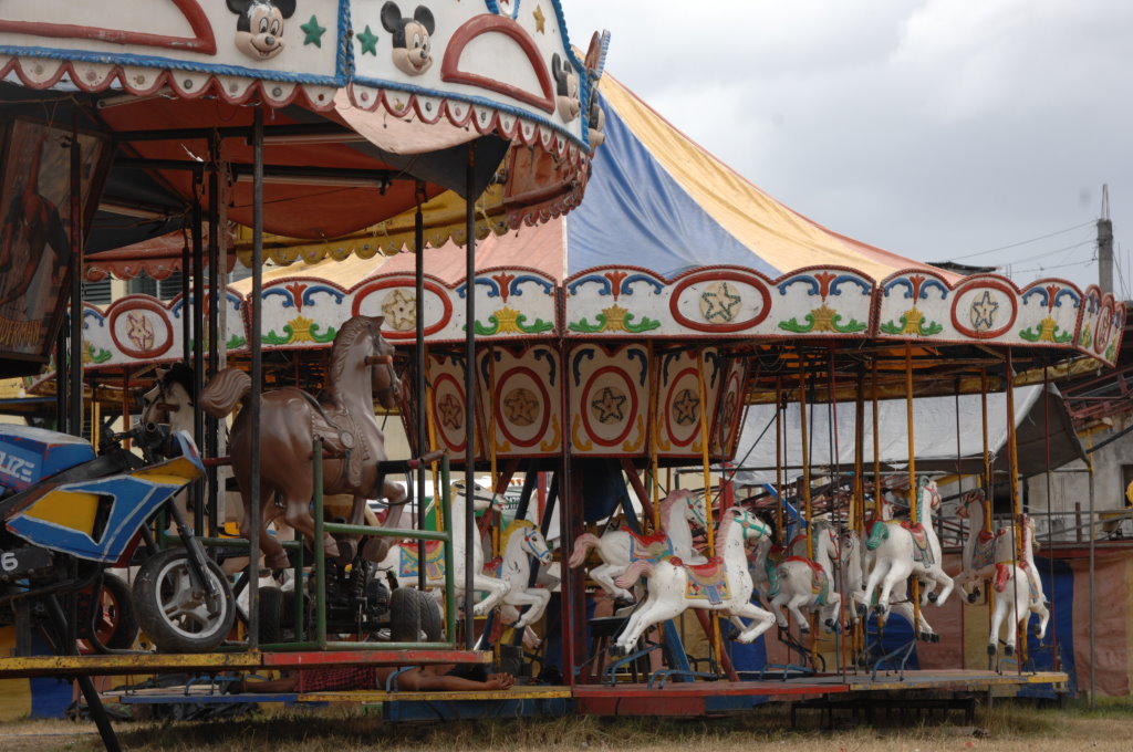 Der alte Rummelplatz vor dem Damm zur Insel wartet verwaist auf seine Kunden…