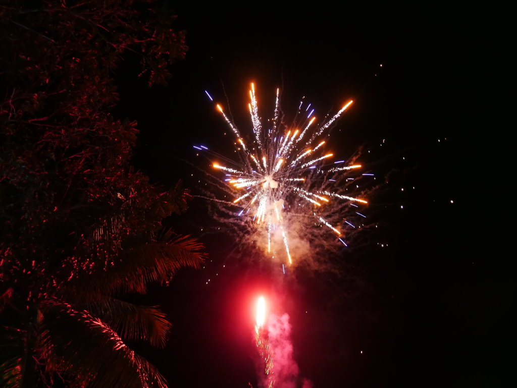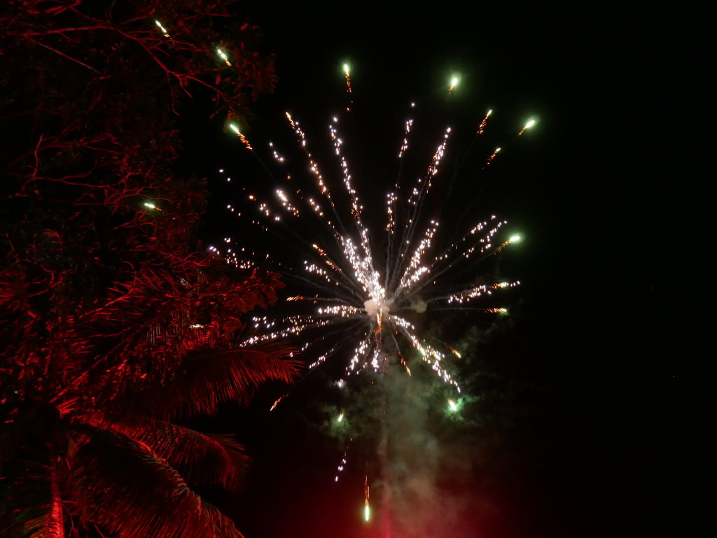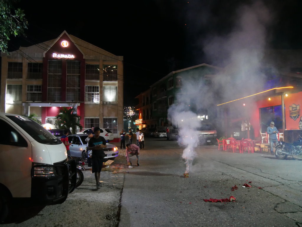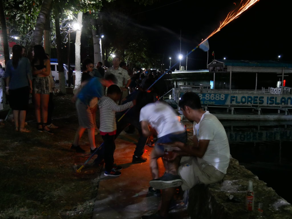 Der Silvesterabend endet nach einem perfekten Abendessen mit gutem Wein und leckeren Spare Ribs im Raices mitten in einer ausgelassen feiernden Menge am Pier unweit unseres Hotels. Eines der kleinen Restaurants hat eigens einen DJ für den Abend engagiert und der bringt jetzt Einheimische wie Touristen gleichermaßen in die richtige Stimmung. Klar wird um Mitternacht dann auch hier geböllert, was zuvor auf den Märkten en gros und en detail zu bekommen war. Nach einer halben Stunde ist der Spuk dann wieder vorbei und die Straßen leeren sich rasch.