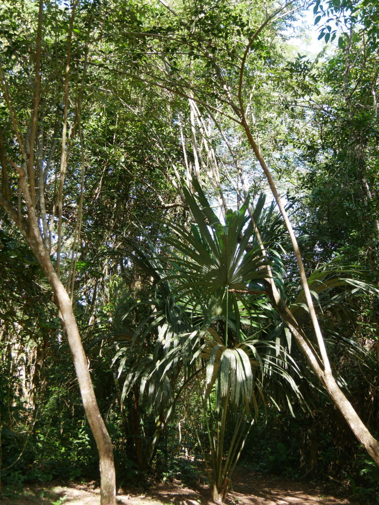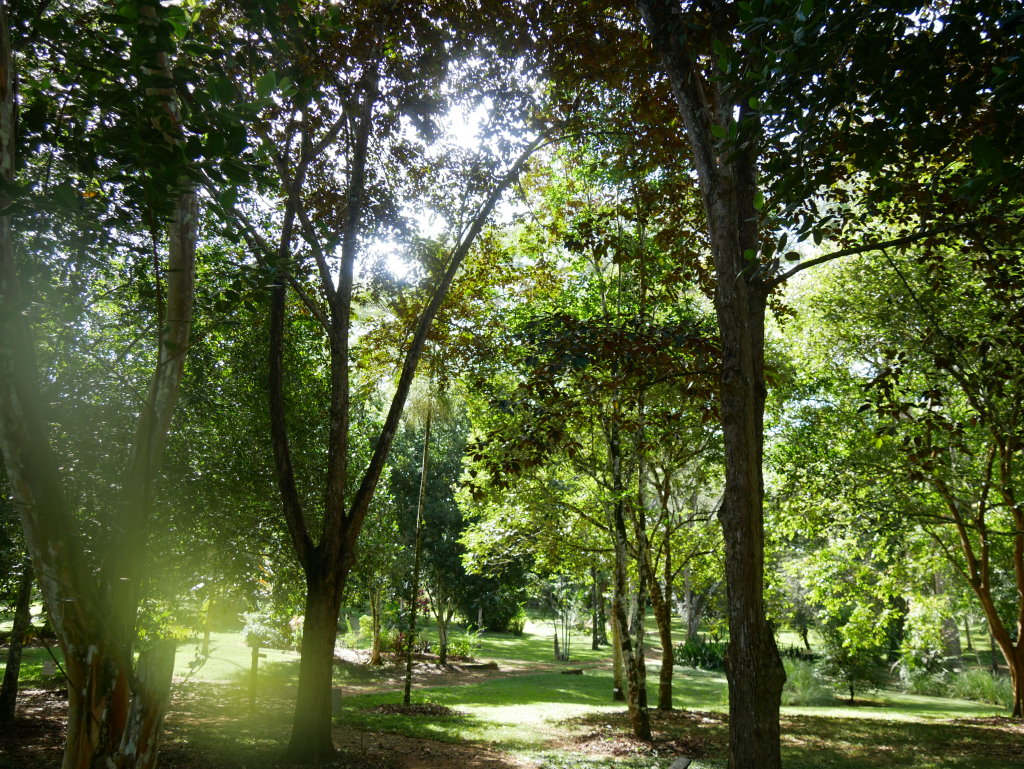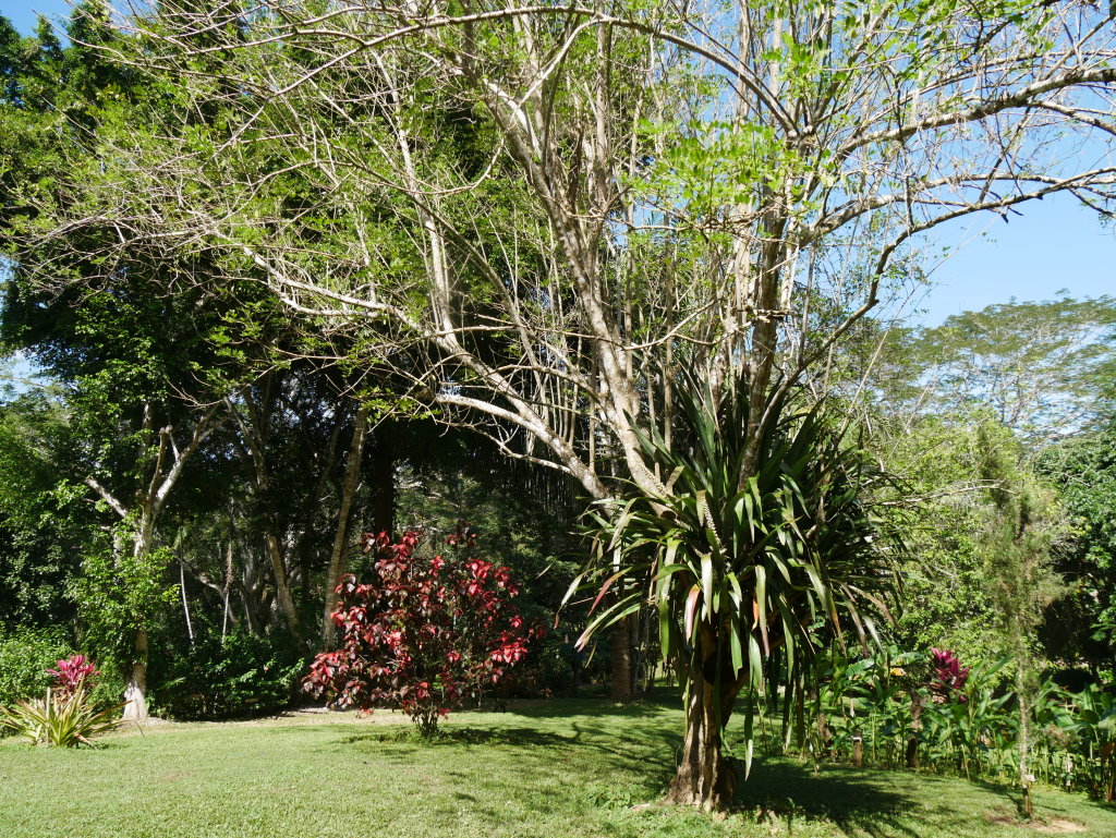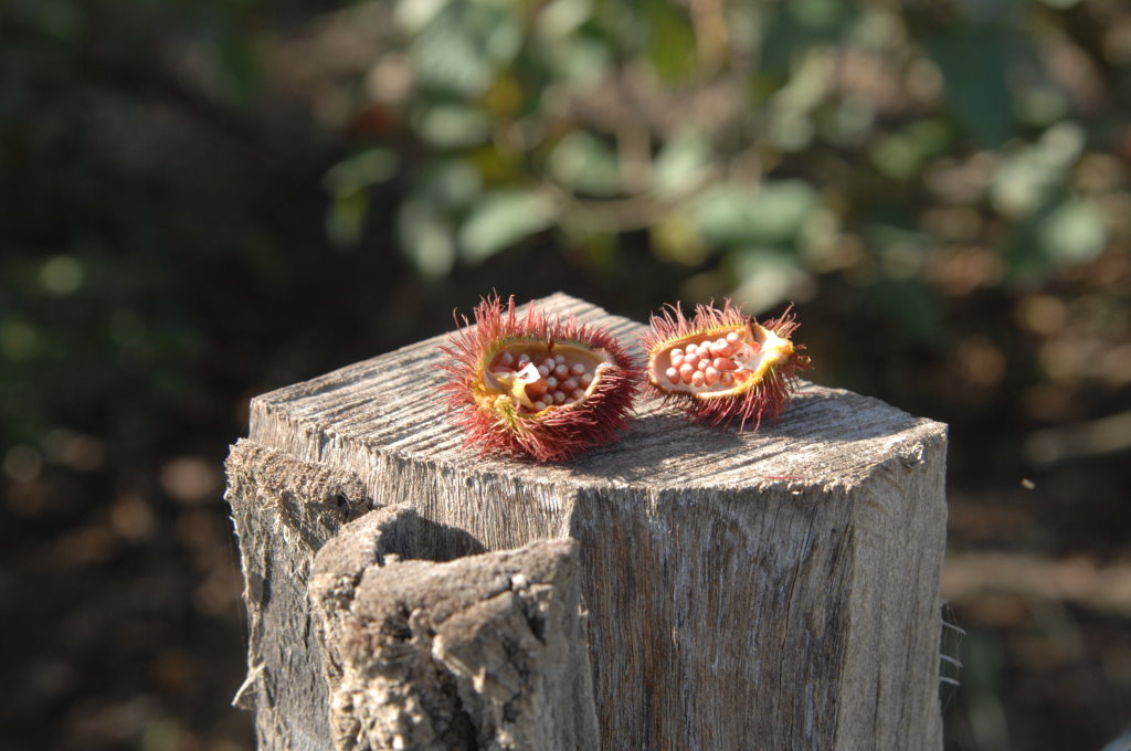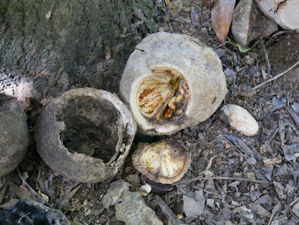 Luis begleitet uns anderthalb Stunden und erläutert fachkundig Sinn und Zweck zahlreicher Bäume und Sträucher. Diese stammen nicht nur aus Belize, sondern aus zahlreichen Ländern weltweit. Zu den hier kultivierten Obstbäumen zählen zum Beispiel die in Asien beheimateten Rambutan, Litschi, Jackfrucht und Mangostin. Ein kurioser Nussbaum ist die im Norden Südamerikas beheimatete Paradiesnuss (Monkey Pot). Ihre Früchte wachsen zunächst in einer kokosnussgroßen Kapsel. Sobald die Samen reif sind, fällt an der Unterseite ein Deckel ab und die paranussartigen Samen fallen heraus.