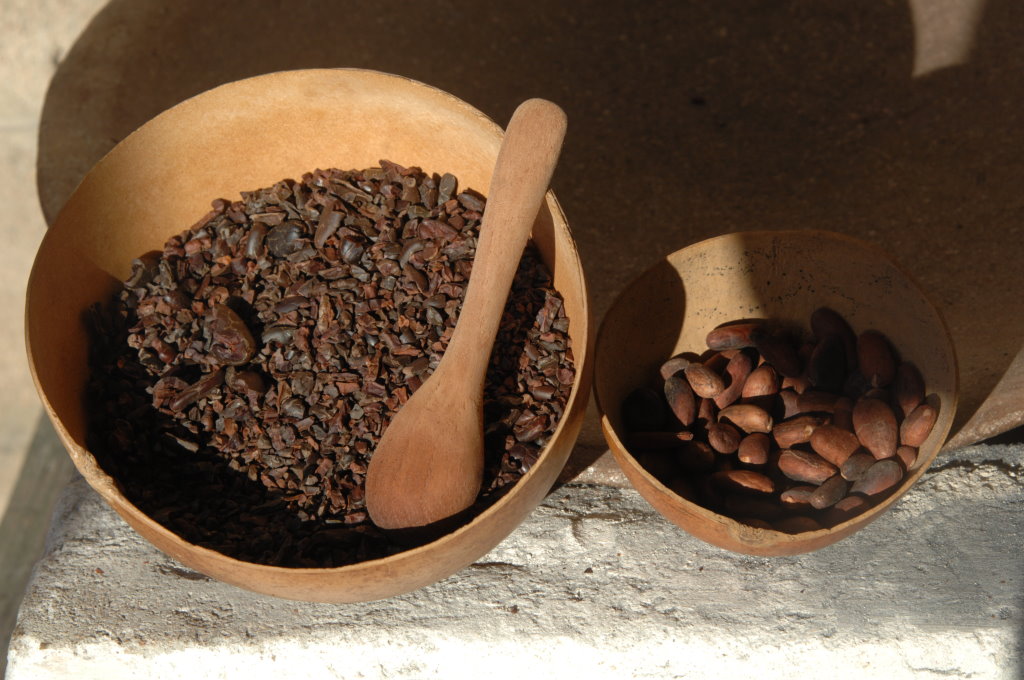 Die in einer Art Mörser zerriebenen fermentierten und gerösteten Bohnen werden nur mit heißem Wasser aufgegossen und gründlich verrührt. Wem das wunderbar schmeckende Getränk zu bitter schmeckt, kann es mit etwas Honig süßen. Weitere bei den Mayas und ihren Nachfahren beliebte Geschmacksvarianten entstehen durch Zugabe von etwas Zimt, Piment oder Chili. Wie so vieles bei der ursprünglichen Kakaoherstellung sind auch diese quasi durch Zufall entdeckt worden. Mit dem Maya-Mörser wurden nicht nur Kakaobohnen, sondern auch Gewürze wie Piment und Chili zerrieben. Und wenn sich dann aus Versehen Reste des einen oder anderen mit den Bohnen mischten…