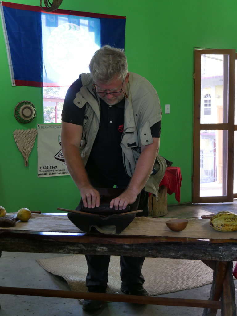 Ein Besuch von AJAW Chocolate bildet den Abschluss unserer kleinen Tour rund um San Ignacio. Schließlich waren es die Maya, denen wir den Kakao verdanken. Daher handelt es sich bei AJAW auch nicht um eine Schokoladenfabrik, sondern um eine detaillierte Demonstration der einzelnen Produktionsschritte von der Fermentierung der Kakaobohne bis zur Herstellung der echten Schokolade bzw. Trinkkakaos. Dieser kommt nämlich gänzlich ohne Milch und Zucker aus.