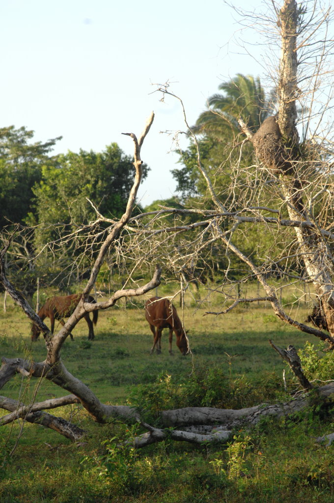 Bis es dunkel wird, machen wir noch einen kleinen Spaziergang in die Umgebung des kleinen Resorts. Unterwegs beobachten wir einige Vögel, deren buntes Gefieder schon aus der Entfernung ins Auge sticht. Ein kleiner Vorgeschmack auf unsere Exkursion morgen. Wegen der Vögel haben wir uns diesen Ort ausgesucht…