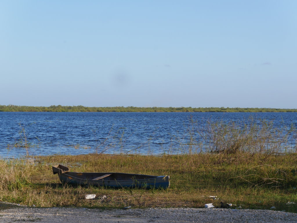 Heute fahren wir ins Niemandsland. Genauer gesagt in das Vogelschutzgebiet von Crooked Tree. Die Anreise von San Ignacio aus geht schneller als geplant. Anstatt mit dem Bus zunächst nach Belize City und dann von dort mit einem weiteren über den Northern Highway bis zur Abzweigung zu fahren, können wir den direkten Weg ohne den dreistündigen Umweg nehmen. Abraham, unser Fahrer von gestern, hat uns einen lukrativen Fahrpreis angeboten, da er sowieso nach Belize City fahren musste, um dort an Abend einen Gast vom Flughafen abzuholen. Und so wird die Leerfahrt auf dem Hinweg zu einer bezahlten. Klassisches Win Win für beide Seiten.
