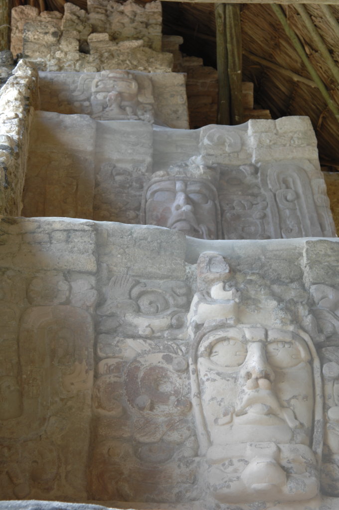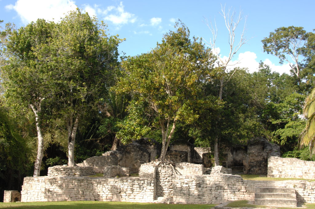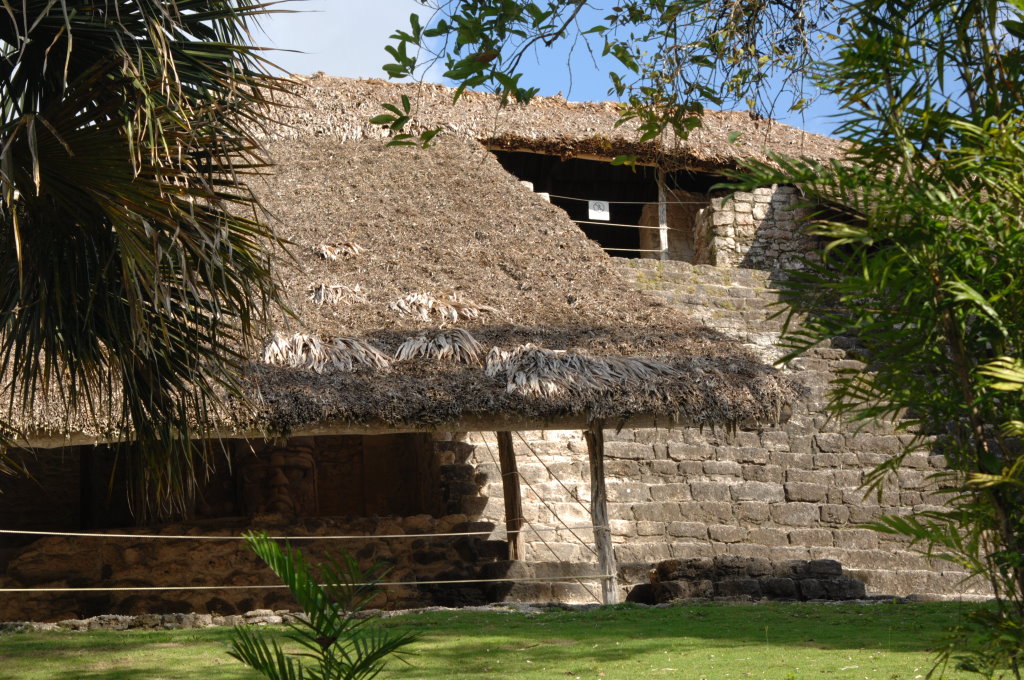 Matthew bringt uns in Chetumal direkt zu einer Mietwagenniederlassung in der Stadt, die wir vorher gegoogelt und ihm auf Google Maps gezeigt haben. Er grinst. Die Adresse liegt gerade mal einen Block entfernt von dem Laden, in dem er ein Ersatzteil für seinen betagten Van kaufen will. Die Formalitäten für den Mietwagen sind schnell erledigt. Eigentlich hatten wir befürchtet eine Nacht in der Grenzstadt zu verbringen und erst am nächsten Tag weiterfahren zu können. Aber es ist erst früh am Nachmittag. Also Zeit genug für die Fahrt zur ersten von mehreren Maya-Stätten, die wir hier in der Gegend besuchen wollen.