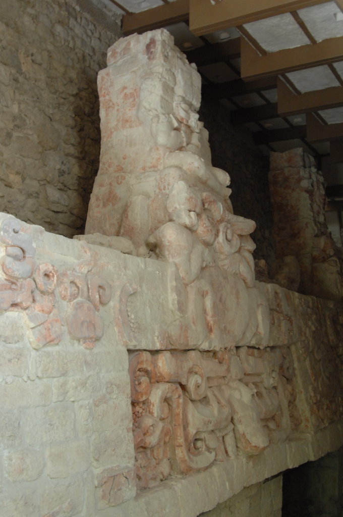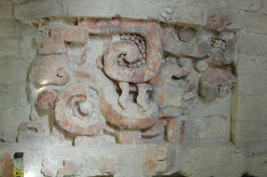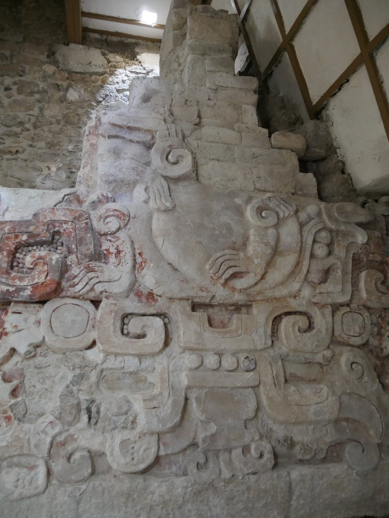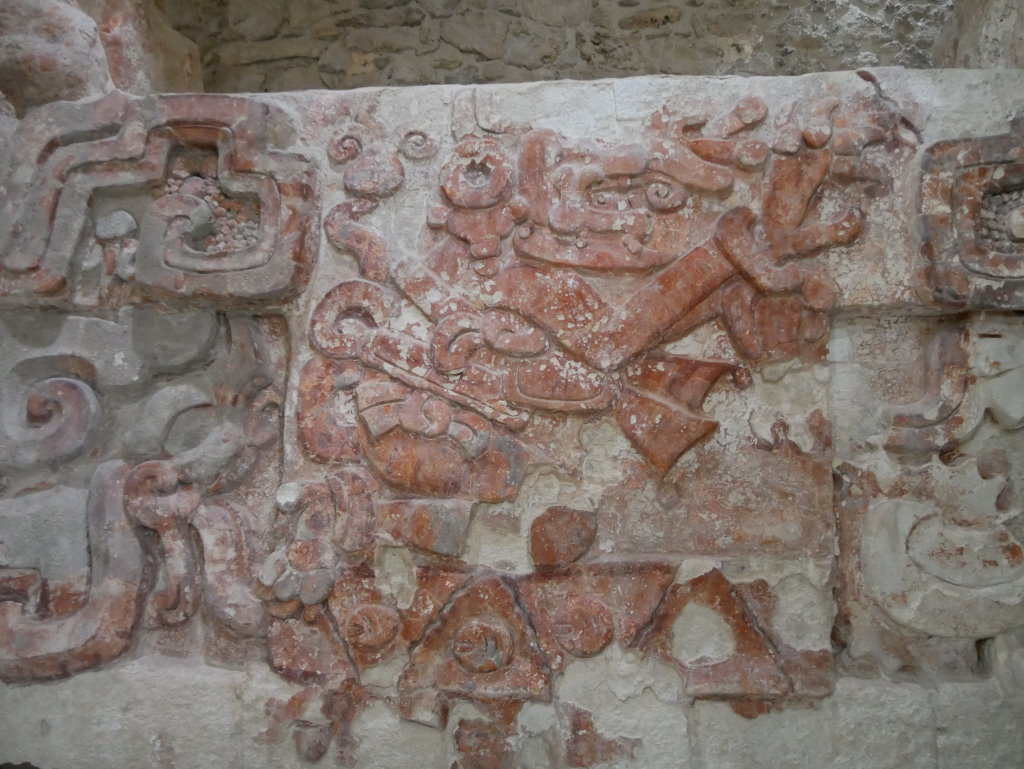 Unter der letzten Umbauung der „Casa de los Cuatro Reyes“ befinden sich die wohl schönsten, bisher entdeckten Stuckreliefs des Maya-Tieflands.