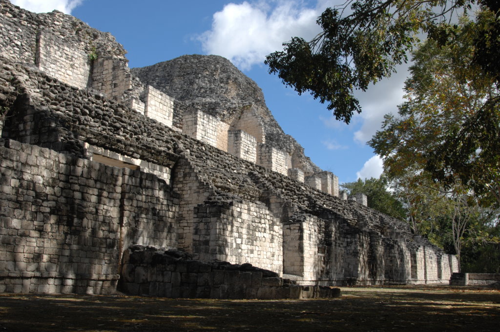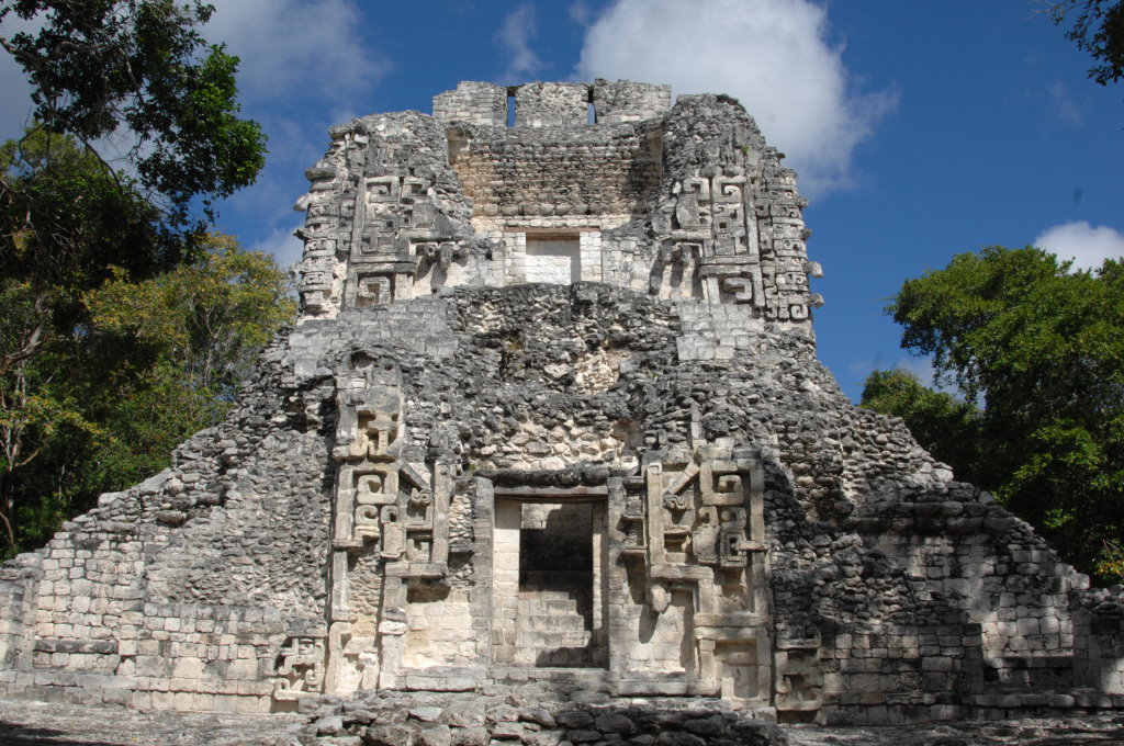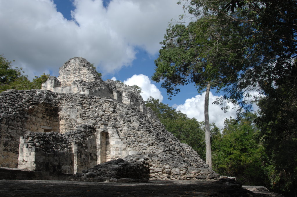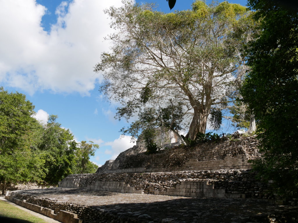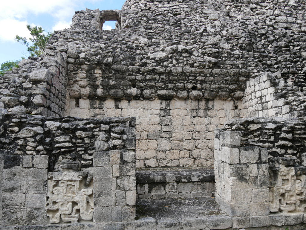 Keine zwei Kilometer entfernt liegt auf der anderen Straßenseite Becán, was so viel wie „vom Wasser geformte Schlucht“ bedeutet. Auch hier ist ein typisches Merkmal des Ortes namensgebend.