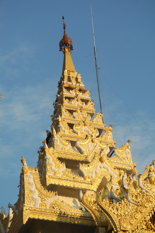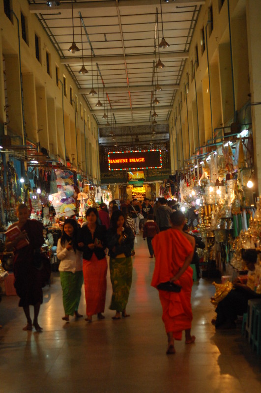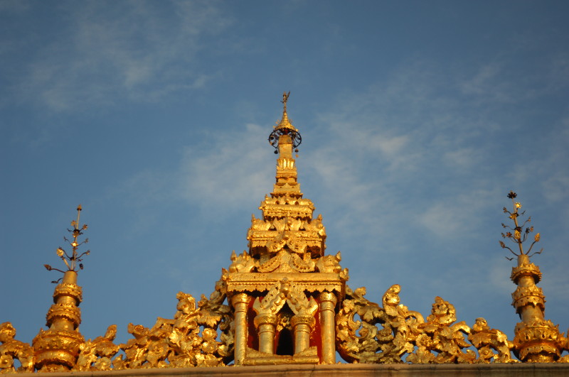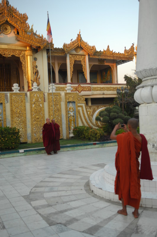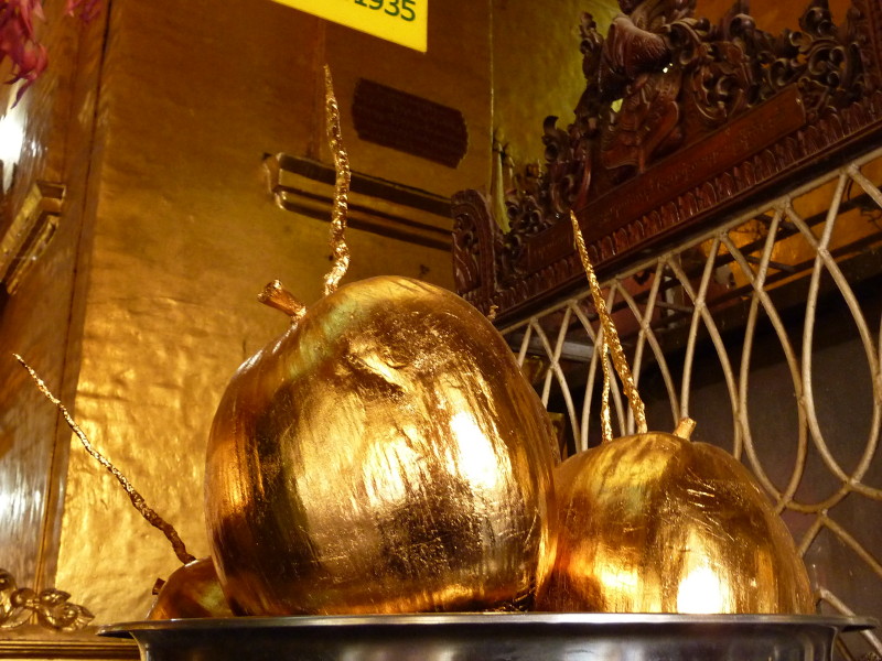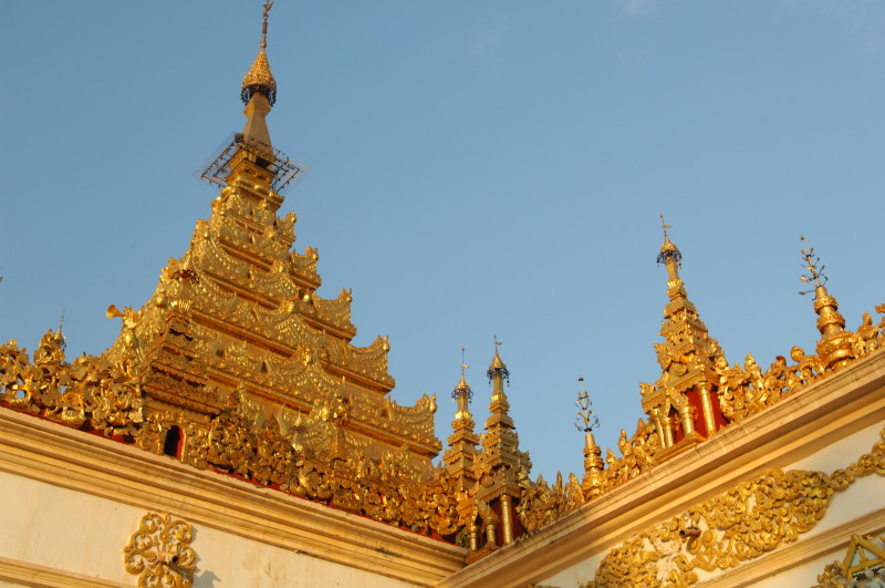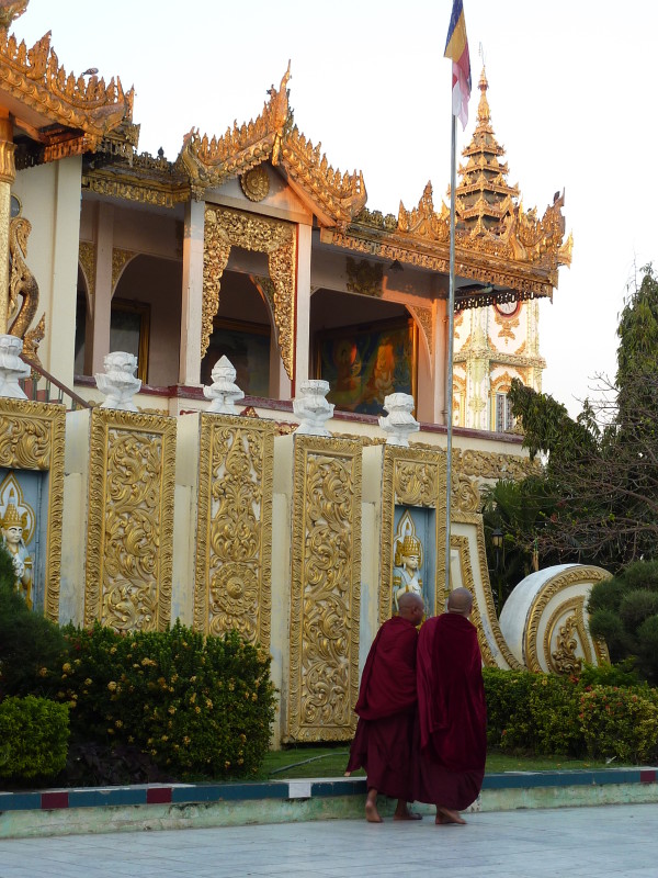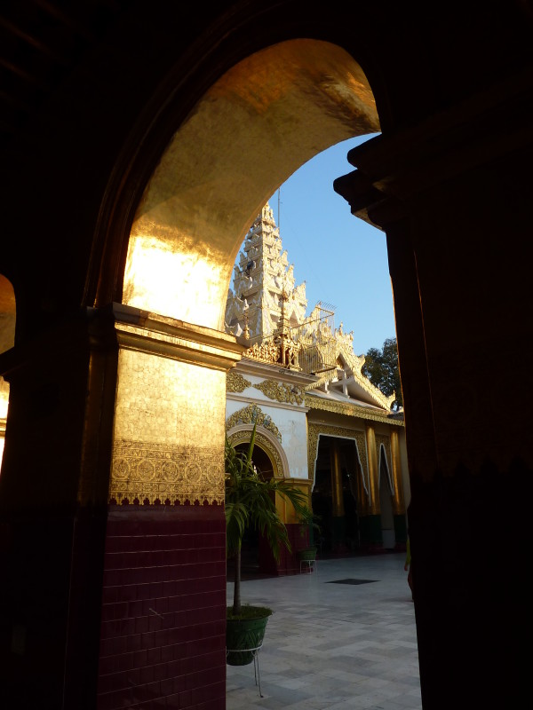 Mit dem shared Taxi geht es mittags zurück nach Mandalay. Der Toyota Carina scheint aus der ersten Serie dieser Baureihe zu stammen, glaubt man dem steten Jaulen der Kurbelwelle. Aber zumindest die Bremsen funktionieren tadellos. Auch wenn der Wagen reif für den Schrottplatz scheint, bringt er uns sicher zum Ziel. Nach dem Einchecken im Hotel wandern wir zur Mahamuni Pagode. Hier hatten wir vor zwei Jahren junge Mönche mit ihren Familien getroffen, der erste Teil der Zeremonie vor der Initiation für einen zeitlich begrenzten Aufenthalt im Kloster.