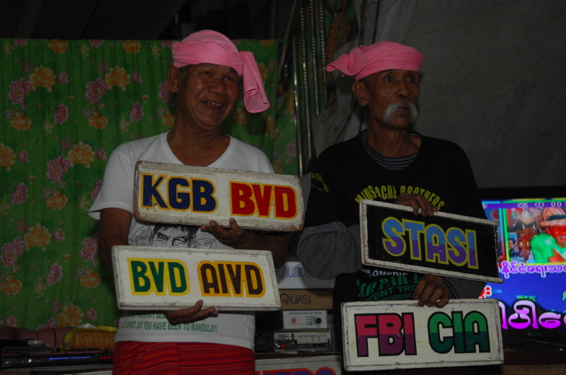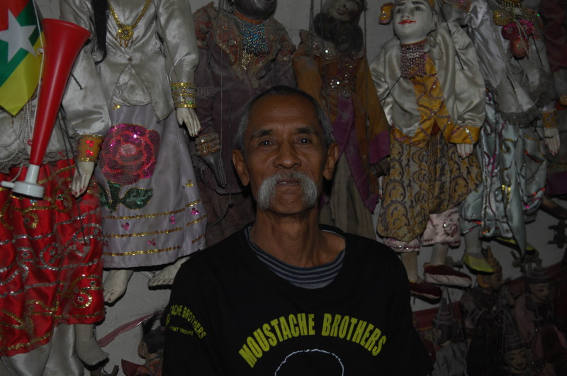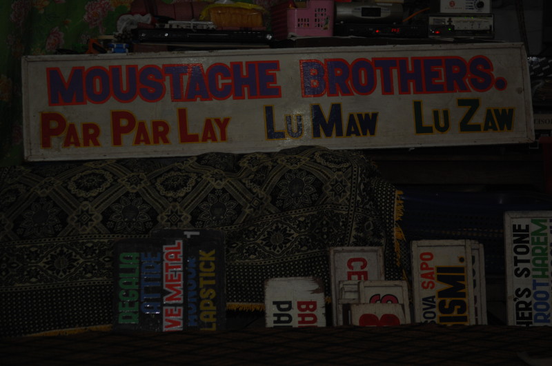 Am Abend besuche ich eine Vorstellung der Moustache Brothers. Das ursprüngliche Künstlertrio aus den zwei Brüdern Par Par Lay und Lu Maw sowie ihrem Cousin Lu Zaw ist seit dem 2. August nur noch ein Duo. Par Par Lay, „Moustache Brother Number One“ starb im August an Nierenkrebs. Eine Folge der zahlreichen Inhaftierungen, wie die Tochter seines Bruders berichtet. Die Truppe geriet wegen ihrer regimekritischen Sketche mehrfach ins Visier der Militärjunta. Jetzt dürfen sie zwar wieder auftreten, aber man hat einen perfideren Weg gefunden, um die ungeliebte Kritik auszutrocknen. Heute dürfen nur noch Ausländer die Vorstellungen besuchen. Wie dünn das Eis der neuen Zeit ist zeigt sich außerdem daran, dass Einheimische wie beispielsweise der Concierge unseres Hotels einfach behaupten, sie hätten genug andere und/oder bessere Comedians gesehen als die Moustache Brothers. In Wirklichkeit ist ihnen der Besuch strikt verboten. Und so ist es ein knappes Dutzend Touristen aus mehreren europäischen Ländern, das heute Abend vor der improvisierten Bühne im Erdgeschoss eines kleinen Hauses in der 39. Straße auf Plastikstühlen hockt.