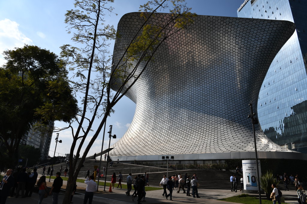 Mit der U-Bahn fahren wir dann zum nächsten Highlight des Tages. Das Museo Soumaya befindet sich in einem 2011 errichteten sechsstöckigen futuristischen Metallbau und beherbergt die rund 66.000 Exponate umfassende Sammlung des mexikanischen Milliardärs Carlos Slim. Namensgeber war dessen verstorbene Ehefrau Soumaya Domit.