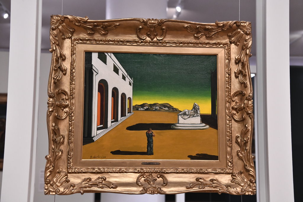 Weiter geht es nach oben in die Etage mit den Impressionisten und Künstlern der europäischen Avantgarde des beginnenden 20. Jahrhunderts. Auch bei diesem repräsentativen Querschnitt der Epochen sind die großen Namen mit bekannten und unbekannteren Werken vertreten. Monet, Renoir, Degas, Toulouse-Lautrec sind schon von weitem zuzuordnen. Auch die „Herbst-Meditation“ von Giorgio de Chirico ist ein typischer Vertreter seines ganz besonderen Stils.