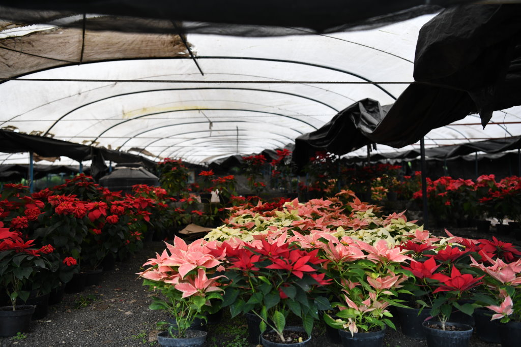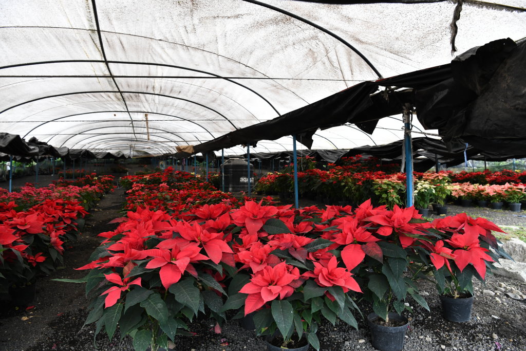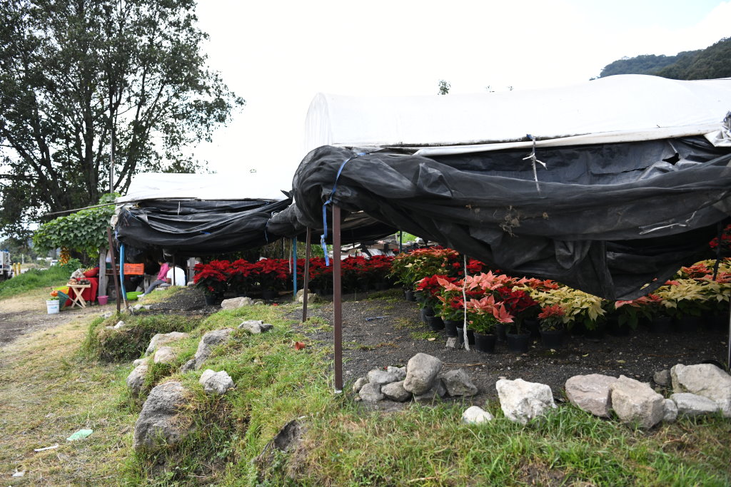 Auf dem Weg von Toluca passieren wir Zitácuaro. Unzählige Treibhäuser aus Plastikplanen bedecken die hügelige Landschaft. Der Ort ist eine Hochburg der Weihnachtsstern-Produktion.