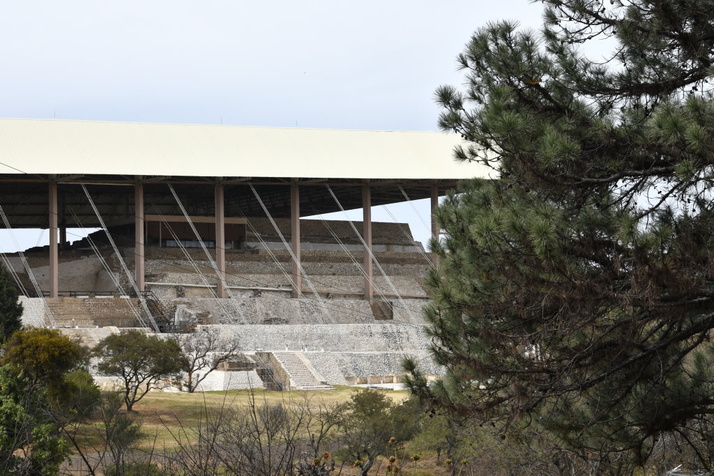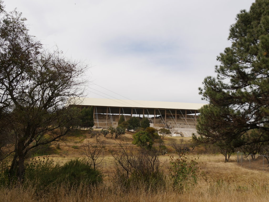 Die beeindruckendsten Wandmalereien des präkolumbischen Mesoamerikas befinden sich in der Pyramidenanlage von Cacaxtla, eine knappe Fahrstunde von Puebla entfernt. Die Anlage wurde von den Olmeca-Xicalanca in der Zeit zwischen 650 und 900 erbaut und besiedelt. Spätestens um das Jahr 1000 wurde der Palastkomplex von den Bewohnern verlassen, möglicherweise nach einem Ausbruch des nahegelegenen Popocatépetl. Die farbenfrohen Fresken wurden erst 1975 bei Raubgrabungen entdeckt und noch im selben Jahr mit archäologischer Sorgfalt freigelegt.