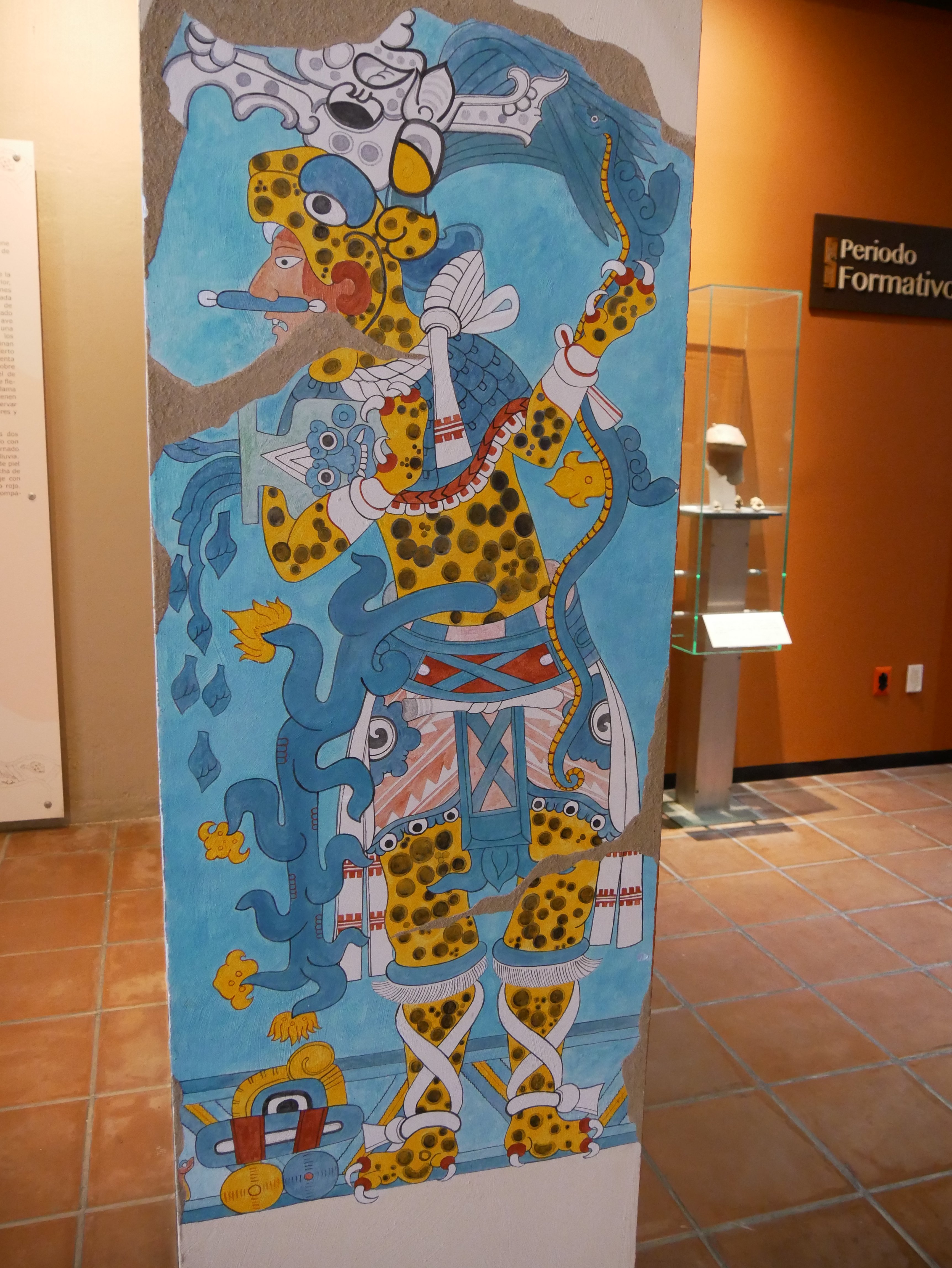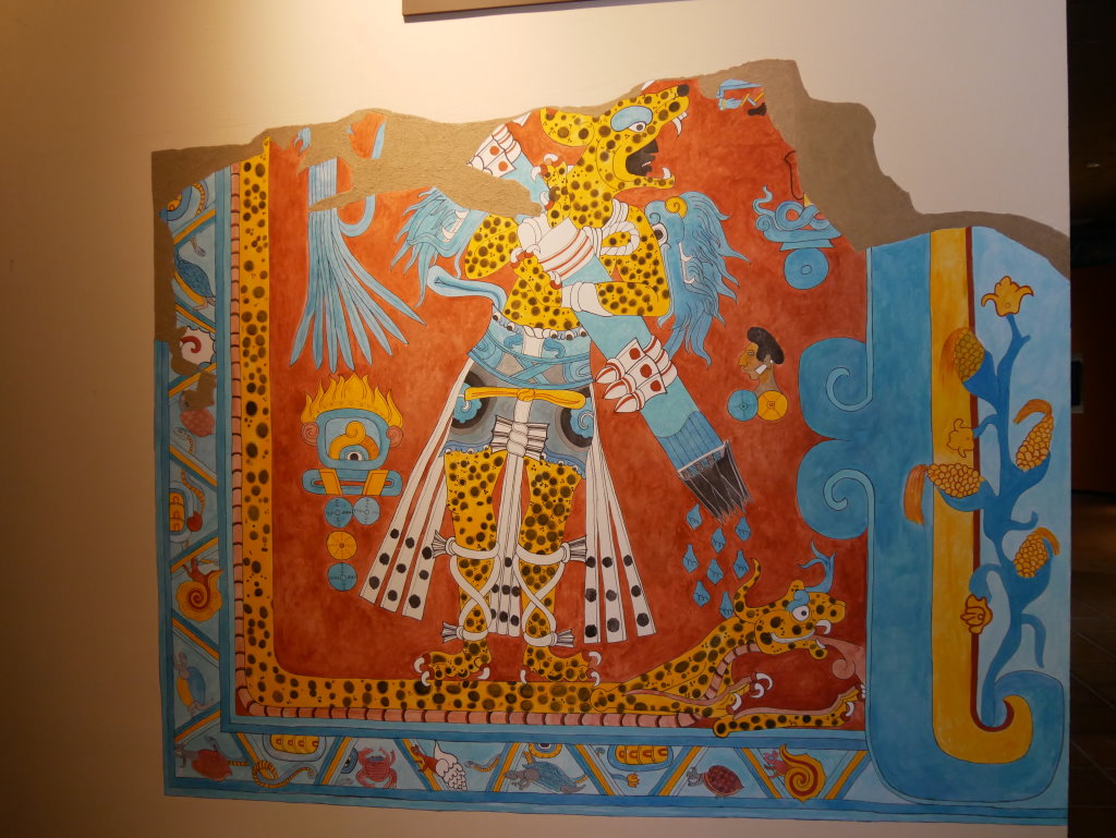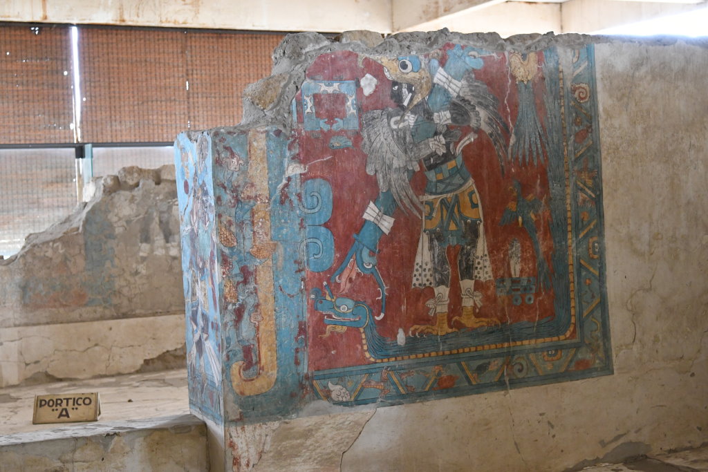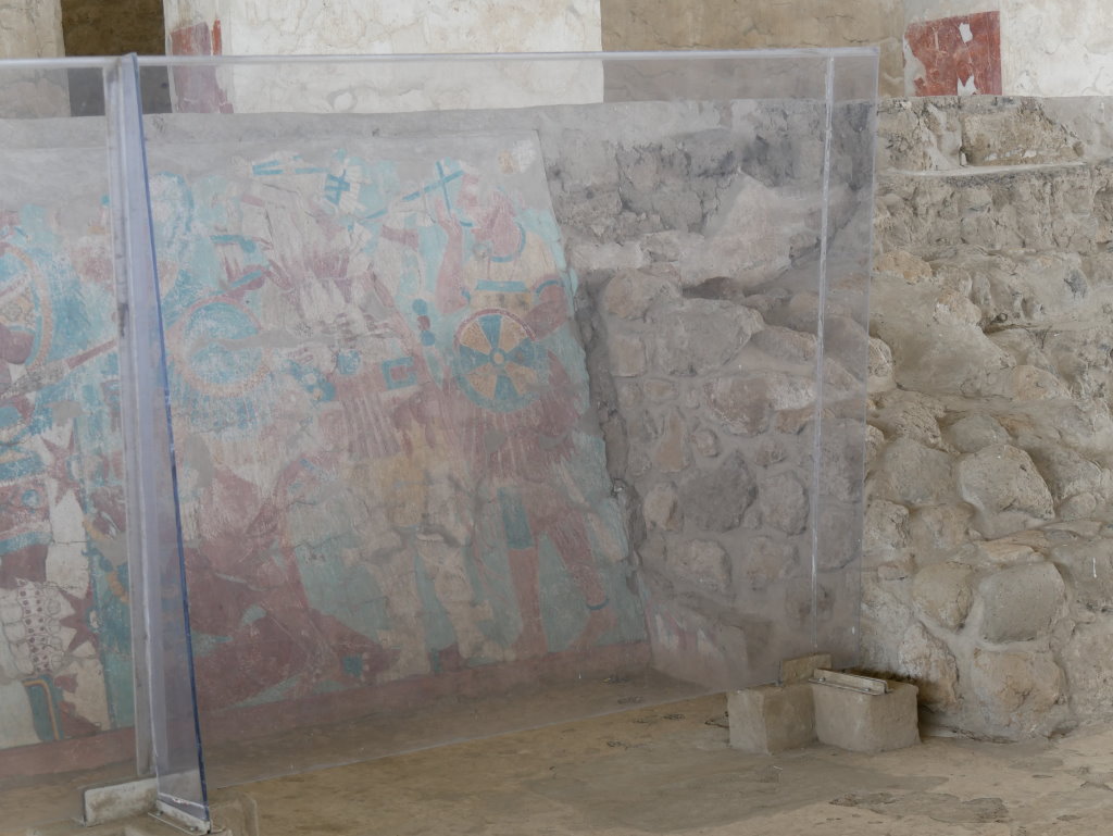 Bereits im letzten Jahr haben uns ähnliche Wandmalereien in der Ausgrabungsstätte von Bonampak beeindruckt. Die in den Ruinen von Cacaxtla gefundenen Bildwerke übertreffen diese aber um ein Vielfaches. Das liegt sicherlich nicht zuletzt am besseren Erhaltungszustand und den klareren Konturen der farbenprächtigen Darstellungen von Vogelmenschen und anderen mythischen Tier-Mensch-Wesen. Damit nicht genug. Hier ist nicht einer, sondern mehrere verschiedene Malstile aus unterschiedlichen Perioden zu sehen.