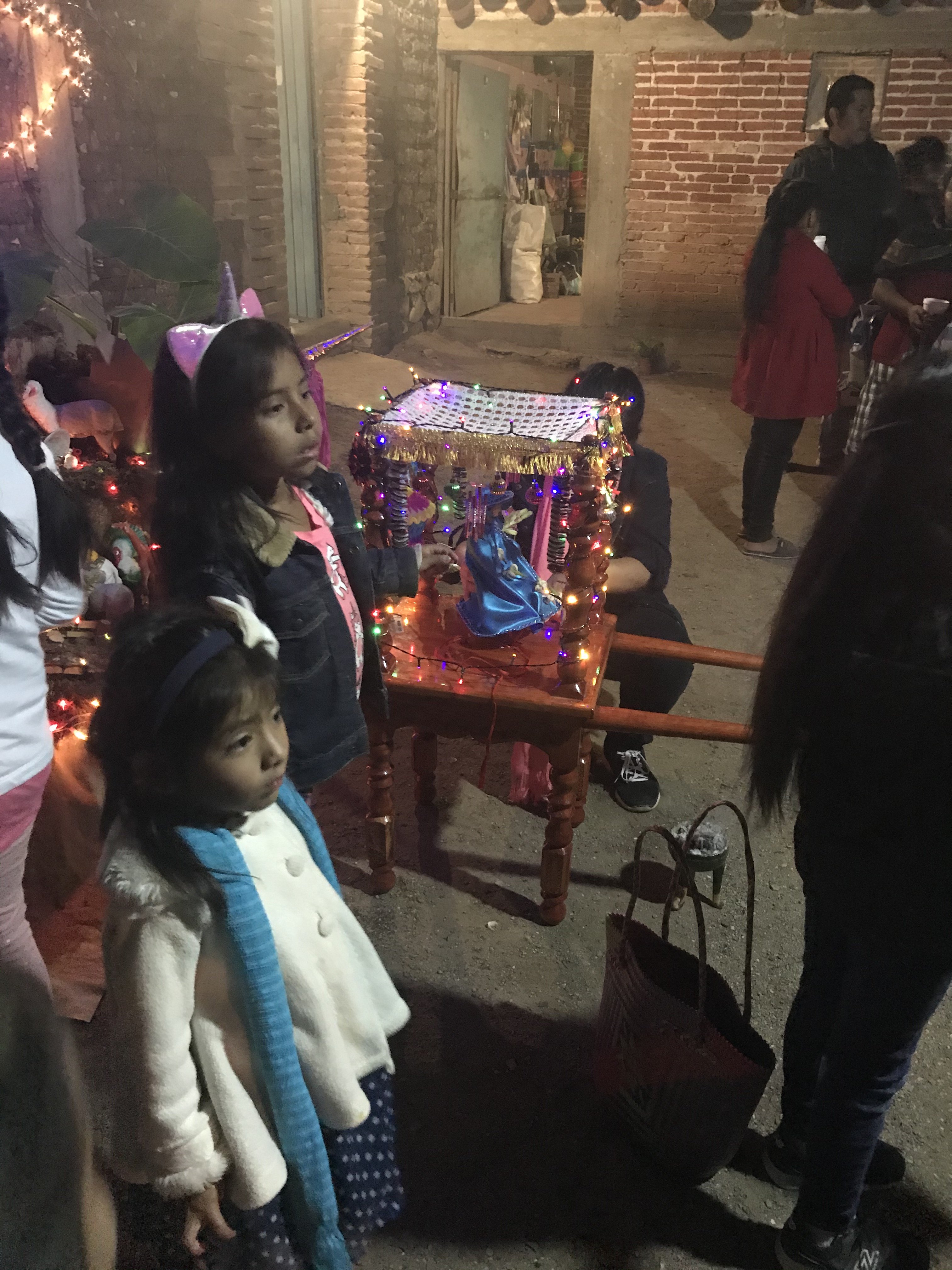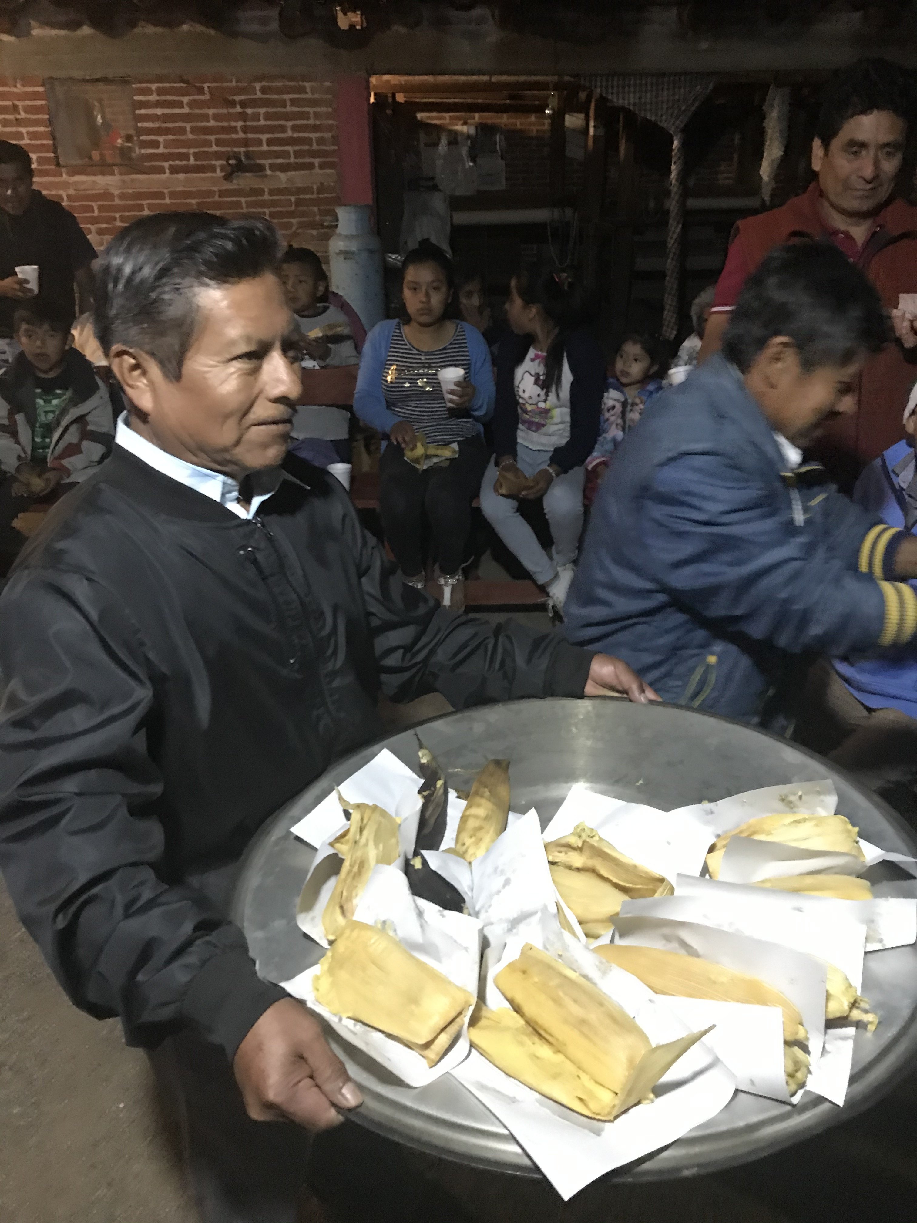 Doch nicht nur ihnen gilt die Gastfreundschaft der Familie. Der Hausherr und seine Kinder verteilen großzügig mit Käse gefüllte Tamales, die aus Maisteig bestehen und in Maisblätter eingewickelt sind. Dazu gibt es Becher mit heißer, nach Zimt duftendeb Horchata. Zum Schluss folgt der Höhepunkt für die Kinder. Eine mit Süßigkeiten gefüllte Piñata in Form eines Einhorns wartet darauf, mit wenigen Stockschlägen aufgebrochen zu werden.