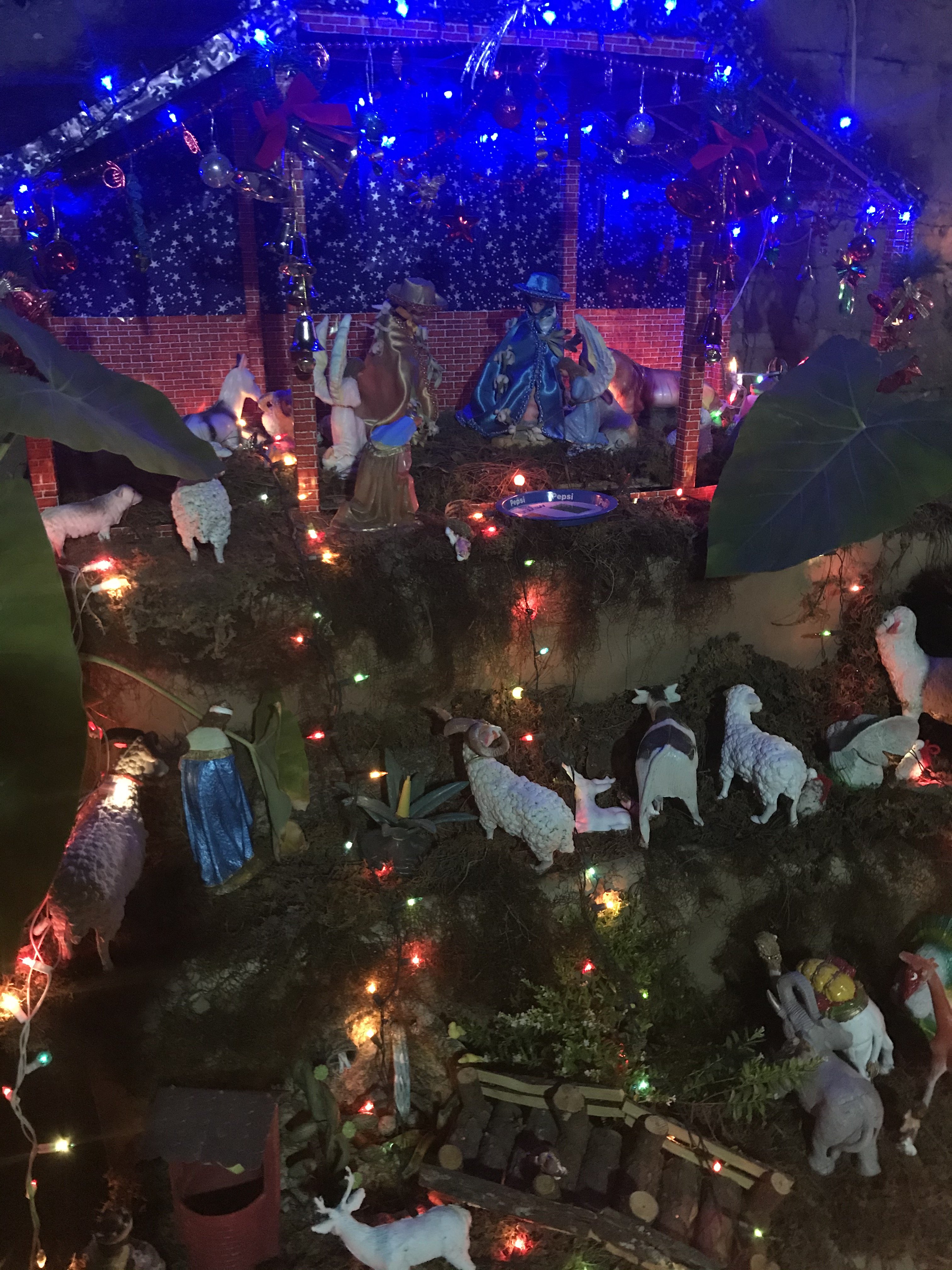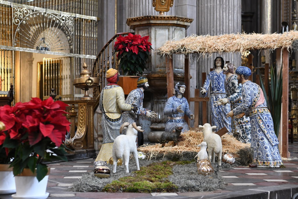 Wie überall um diese Zeit ist hier schon die Weihnachtskrippe vorbereitet. Das außergewöhnliche an ihr: die lebensgroßen Figuren bestehen aus weißblau bemaltem Porzellan.