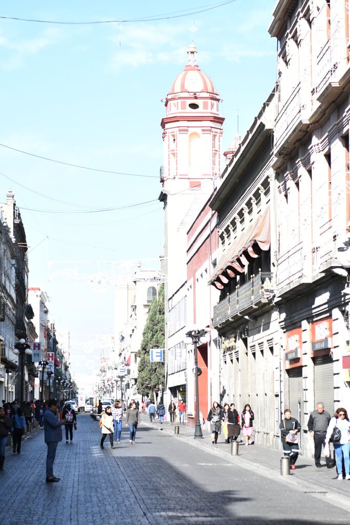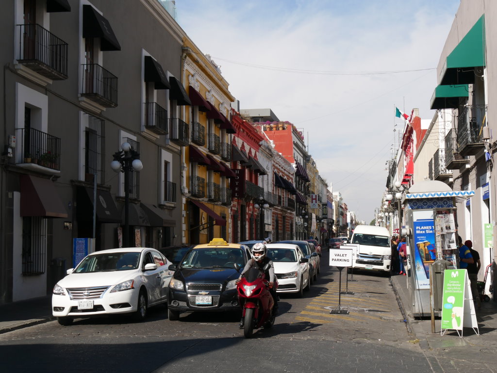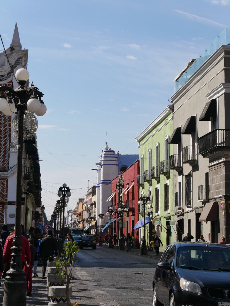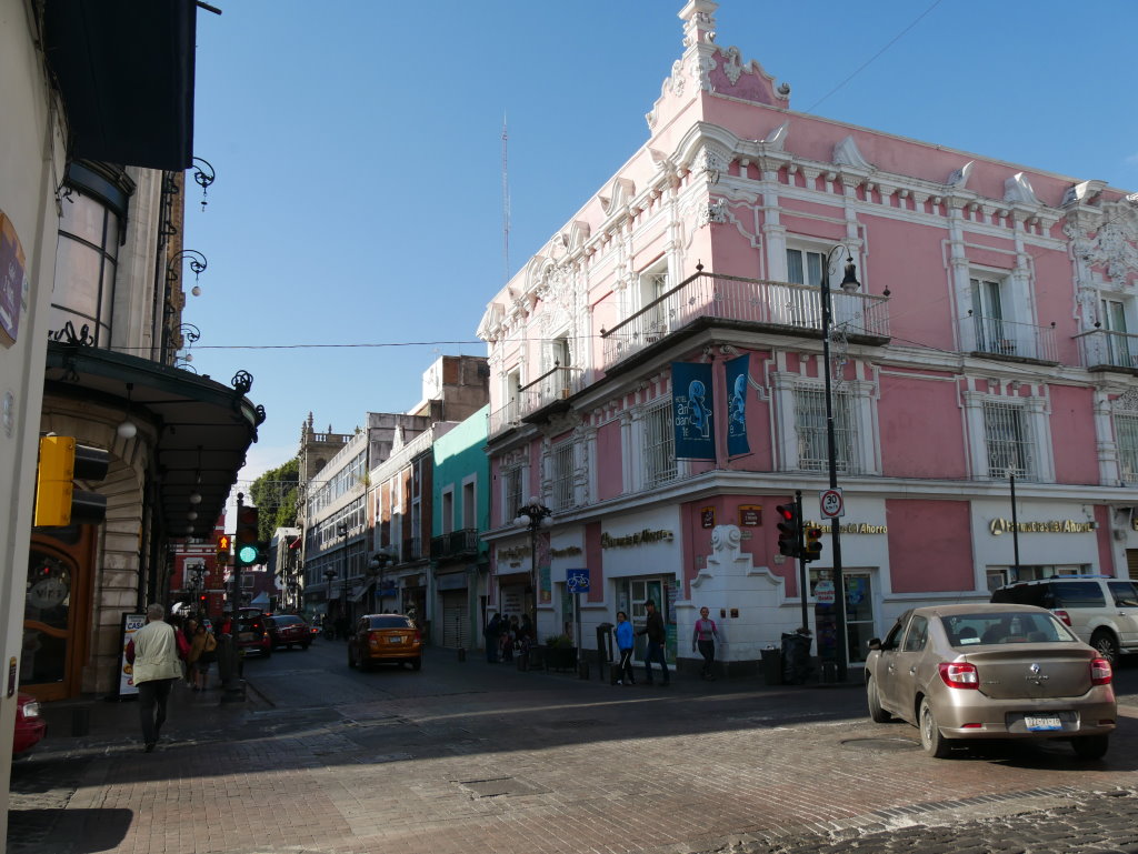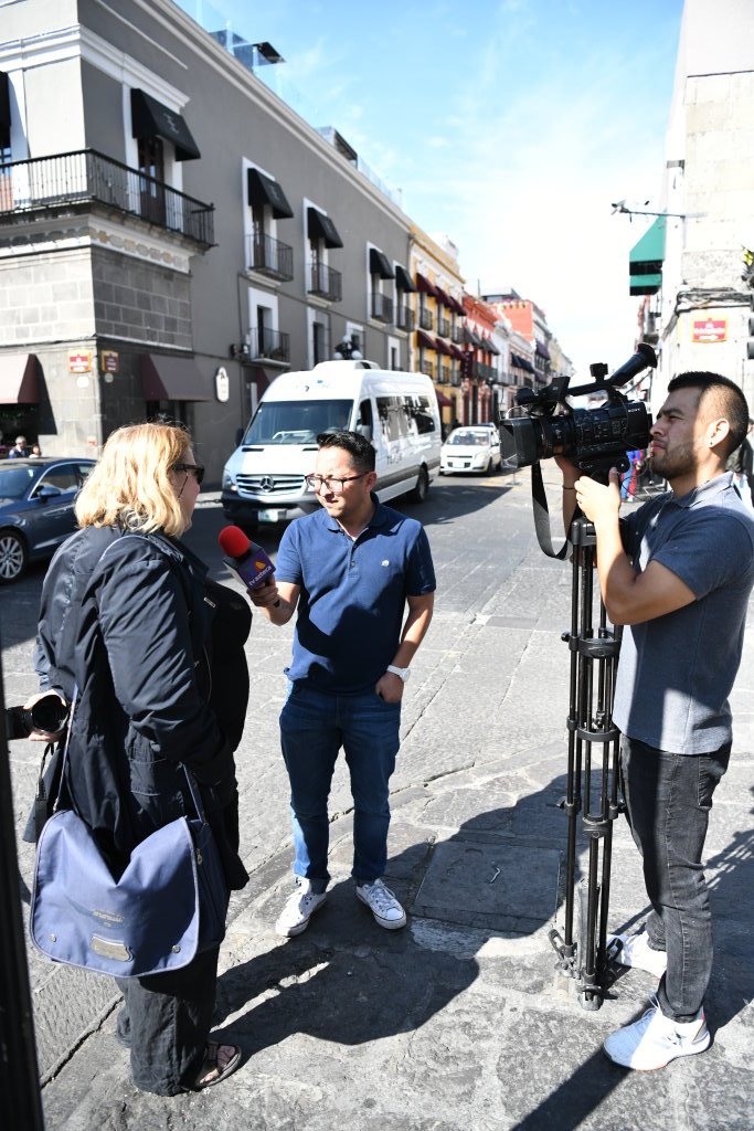 Nach dem üppigen Frühstück in einem Lokal am Zócalo wollen wir die Kathedrale von Puebla besichtigen. An der Kreuzung werden wir zunächst von einem Team des mexikanischen Privatsenders TV Azteca abgefangen. Der Reporter hat uns als Touristen identifiziert und will wissen, was uns an der Stadt Puebla gefällt und wo wir schon überall waren.