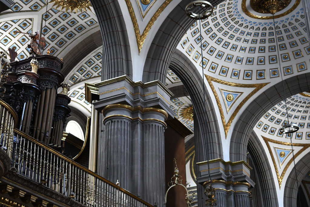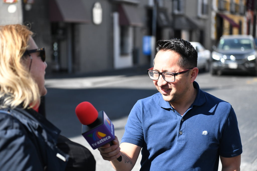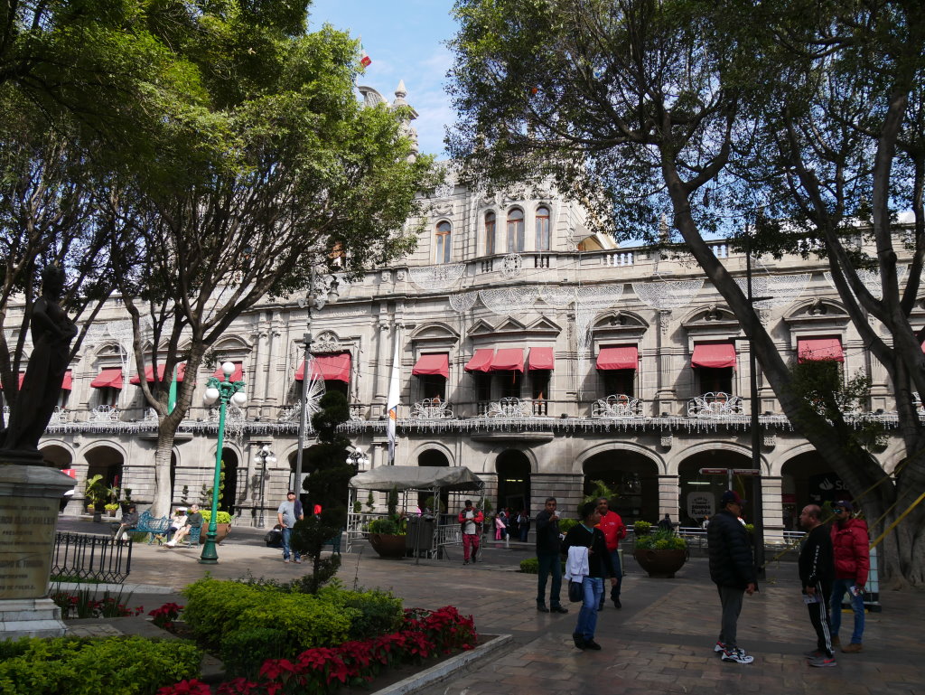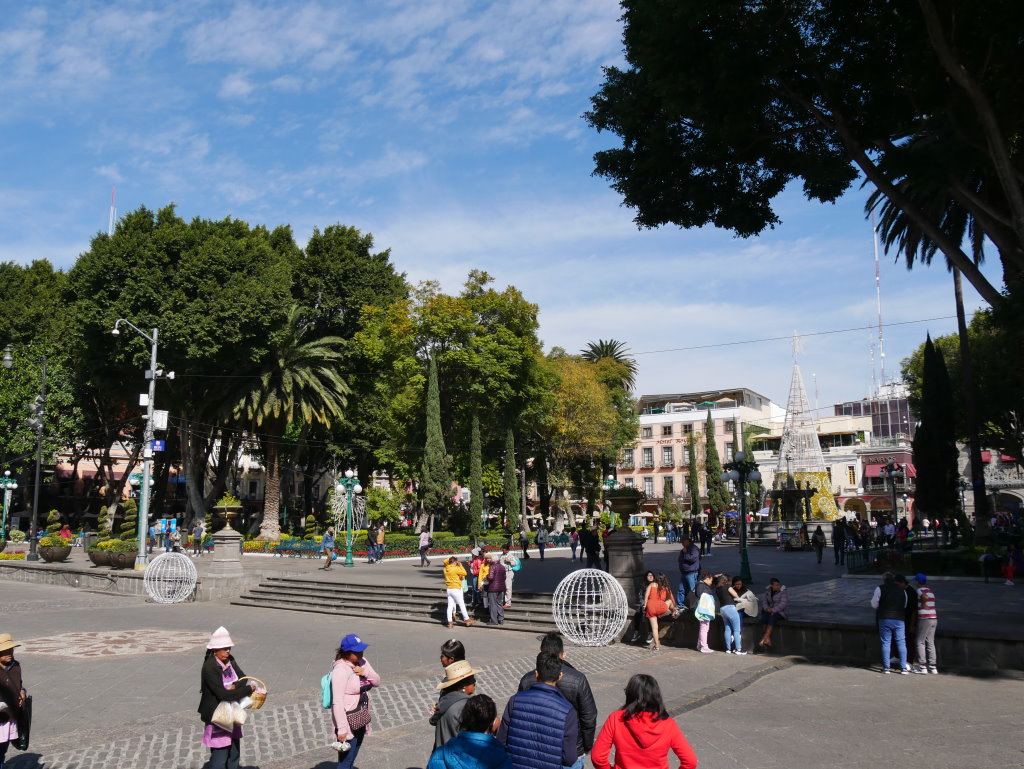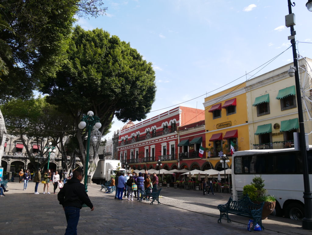 Nach dem üppigen Frühstück in einem Lokal am Zócalo wollen wir die Kathedrale von Puebla besichtigen. An der Kreuzung werden wir zunächst von einem Team des mexikanischen Privatsenders TV Azteca abgefangen. Der Reporter hat uns als Touristen identifiziert und will wissen, was uns an der Stadt Puebla gefällt und wo wir schon überall waren.