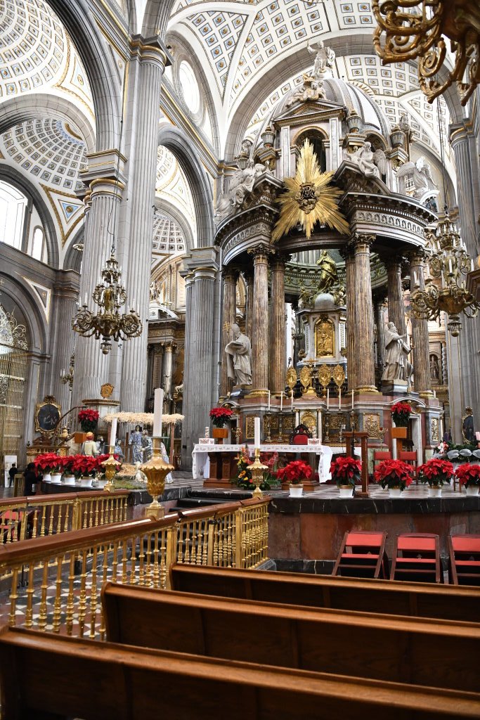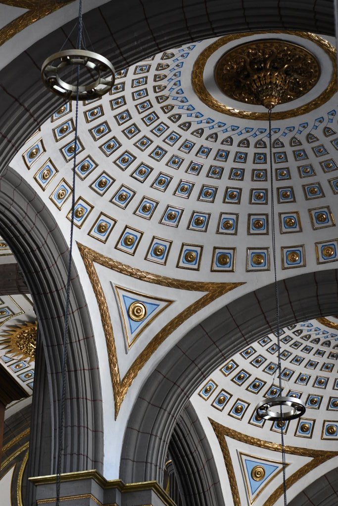 Das klärt sich schnell, wenn man den 82 Meter langen und 52 Meter breiten fünfschiffigen Innenraum betritt. Über dem Mittelschiff erhebt sich der Glockenturm, über dem Hauptaltar eine gewaltige Kuppel.