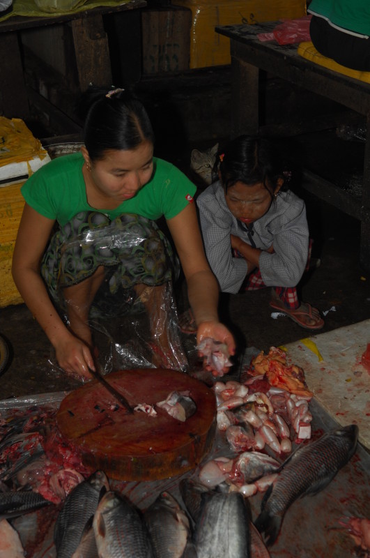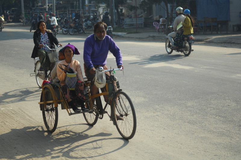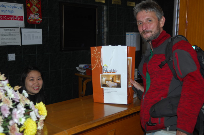 Wir fahren zurück zum Hotel und nutzen den Rest des Tages für einen Besuch des örtlichen Markts und um ein wenig die Stadt zu erkunden. Bei Einbruch der Dämmerung sitzen wir auf der Terrasse des Friendship Hotel und genießen bei einem Glas Mandalay Rum den Sonnenuntergang. Morgen wollen wir endlich unser Ziel erreichen, zusammen mit Einheimischen auf einer regulären Fähre den Irrawaddy flussabwärts zu fahren.