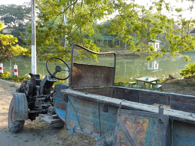 Zwei Stunden später ist von dem kleinen Boot noch nichts zu sehen, aber „unser“ Passagierboot dampft um die Flussbiegung. Jetzt taucht auch der örtliche IWT-Mitarbeiter auf, bei dem wir tags zuvor die Tickets gebucht haben (Inland Water Transport). Die gerade eingetroffene Fähre sei erst am nächsten Morgen für die Tour flussabwärts bereit. Heute geht nichts mehr.