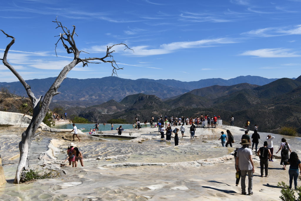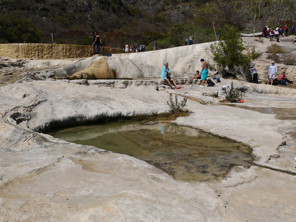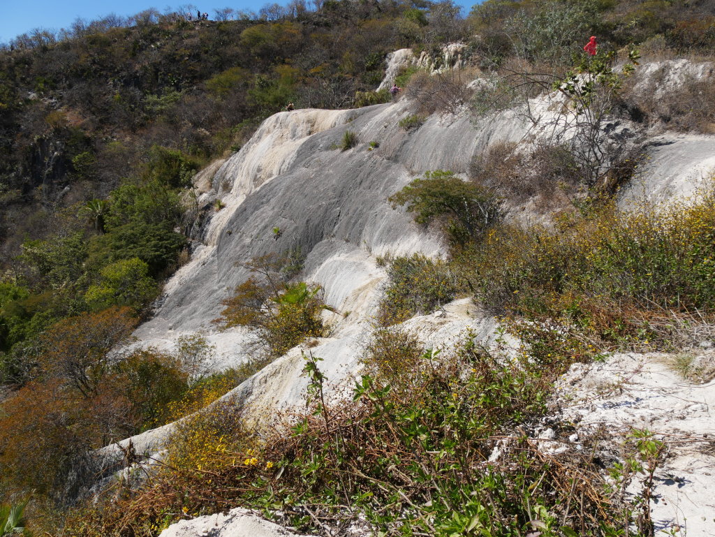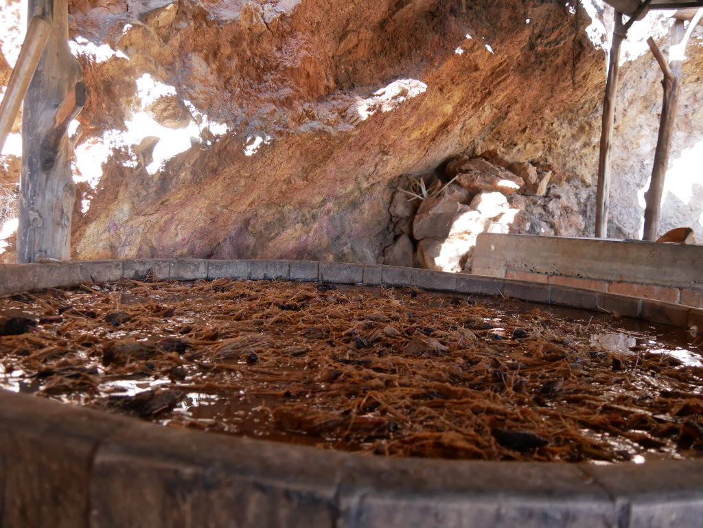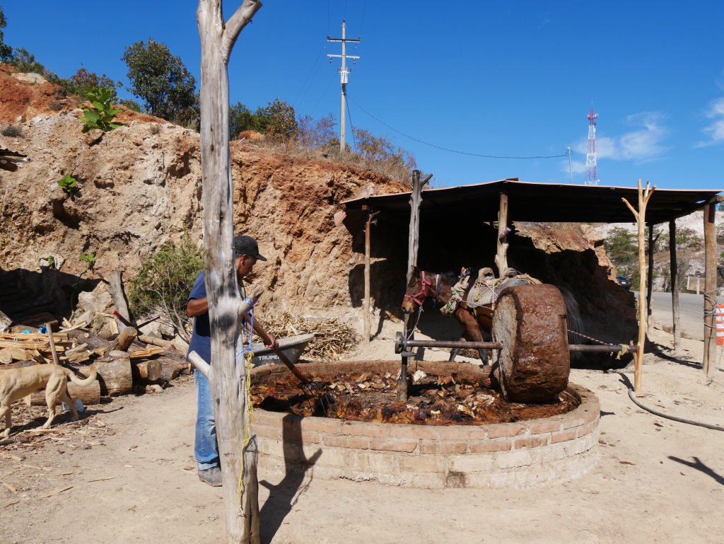 Nachtrag: Tagsüber haben wie die 70 Kilometer östlich von Oaxaca gelegenen versteinerten Wasserfälle (Hierve el Agua) besucht und auf dem Rückweg die traditionelle Mezcal-Herstellung eines Kleinbrenners besichtigt.