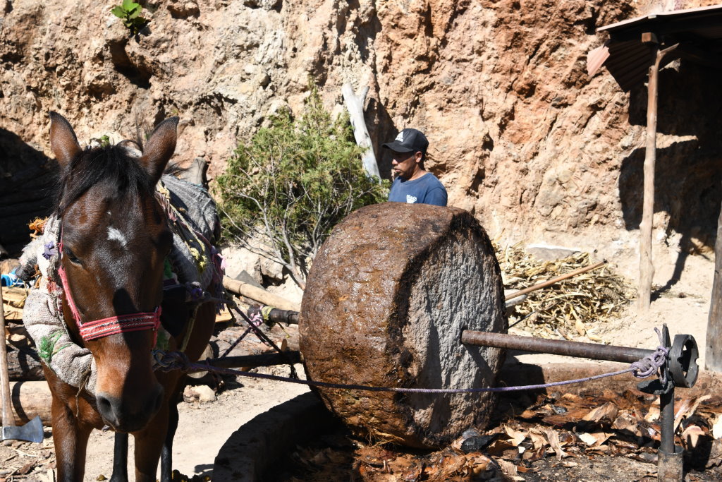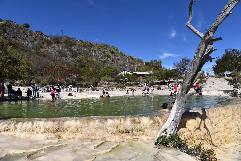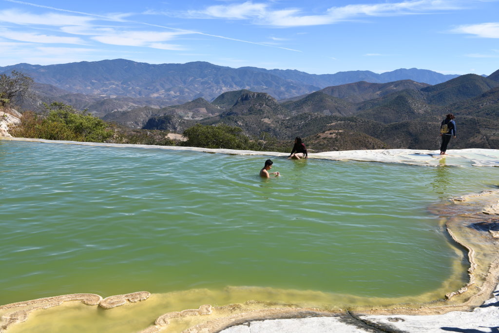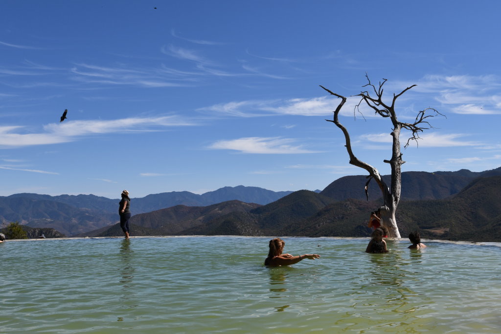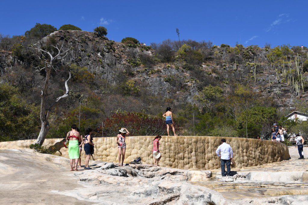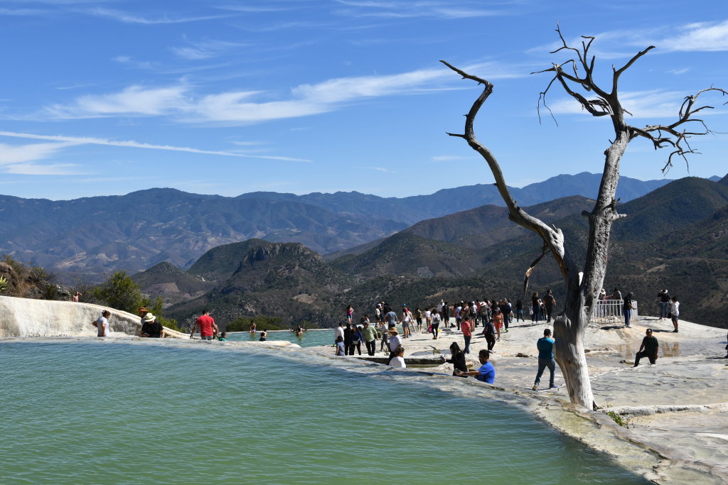 Nachtrag: Tagsüber haben wie die 70 Kilometer östlich von Oaxaca gelegenen versteinerten Wasserfälle (Hierve el Agua) besucht und auf dem Rückweg die traditionelle Mezcal-Herstellung eines Kleinbrenners besichtigt.