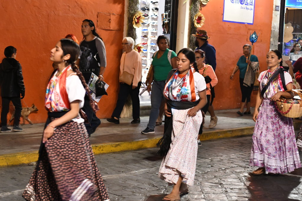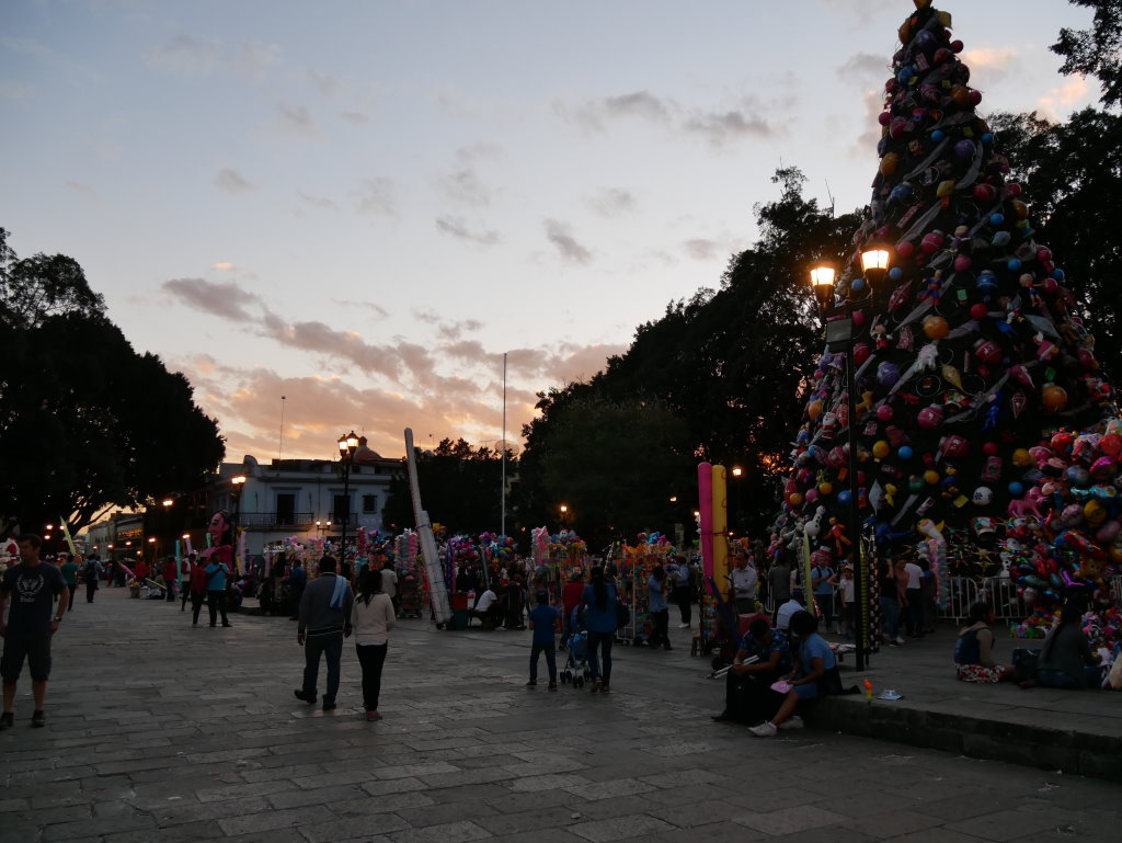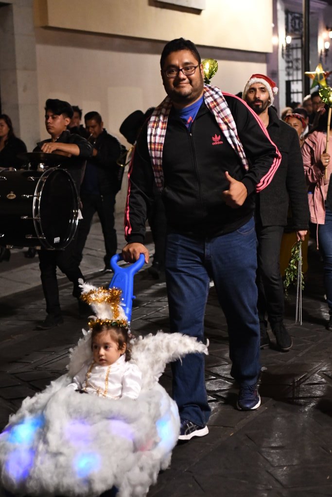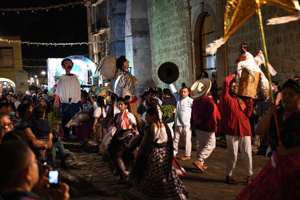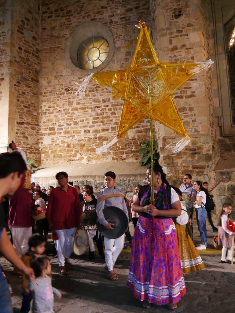 Am Heiligen Abend vermischen sich in Oaxaca die Traditionen. Die Posadas werden mit den Calendas aufgepeppt. Letztere sind farbenfrohe Umzüge mit den für Oaxaca typischen Riesenpuppen, wie sie auch beim Fest am Tag der Toten durch die Stadt ziehen.