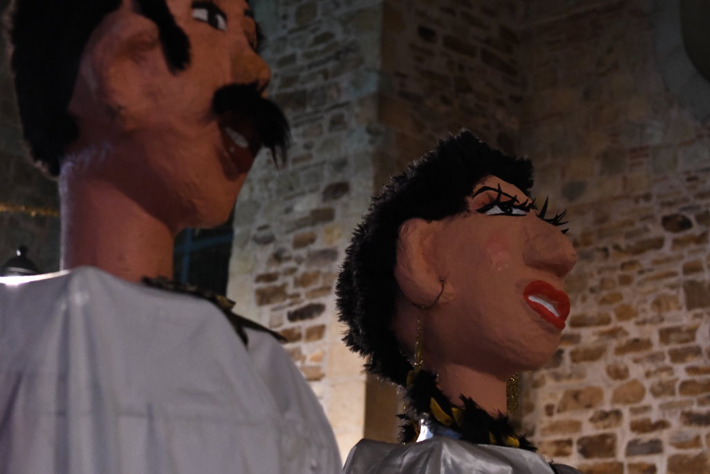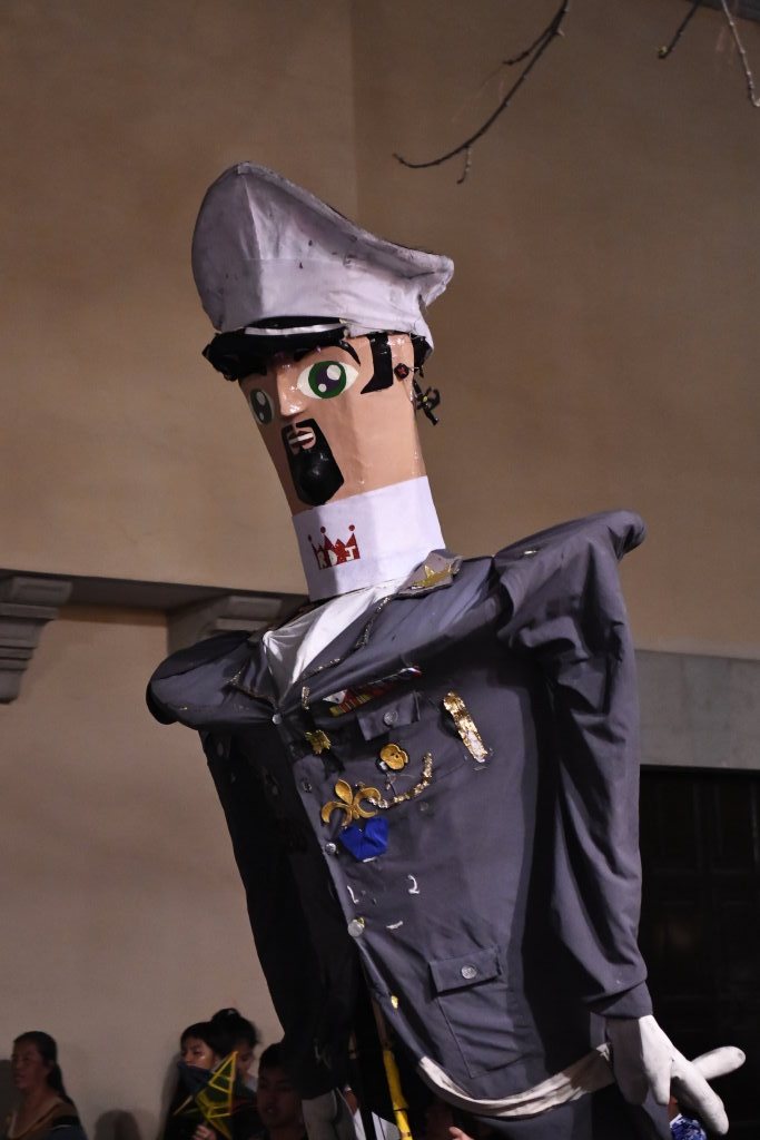 Den Abschluss des Zuges bilden zwei Riesenpuppen aus Stoff und Pappmaché, die „Mono de Calenda“, sowie ein Pickup.