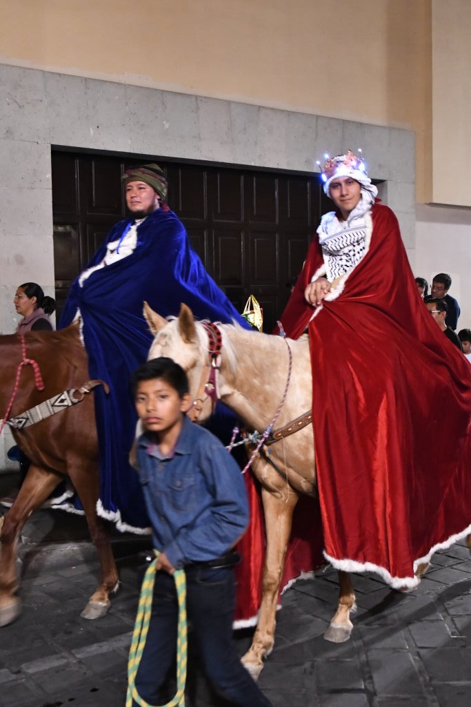 Maria darf klassisch auf einem Esel reiten und diesmal sind es die heiligen drei Könige, die hoch zu Ross die Nachhut bilden.