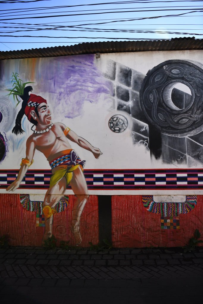 Viele Fassaden der Häuser zieren bunte Gemälde, die viel vom Selbstverständnis der hier lebenden indigenen Bevölkerung erzählen. Einige der schönsten findet man an den Wänden des überdachten Sportplatzes in der Stadtmitte. Gerade trainieren hier Jungs und Mädchen ausdauernd ihre Fertigkeiten im Basketball.